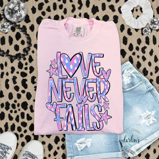 Love Never Fails Pink and Purple Shirt
