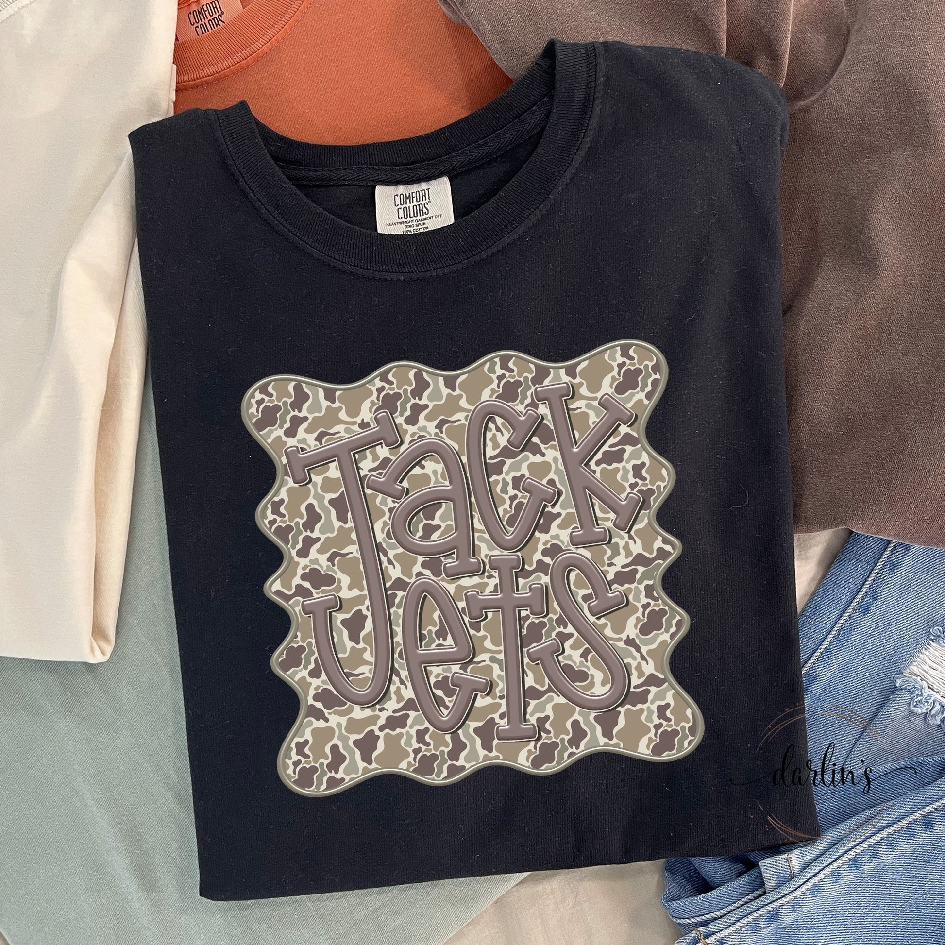 Get ready to turn heads and show off your Jackets pride with our fun and playful Camo Mascots shirt!