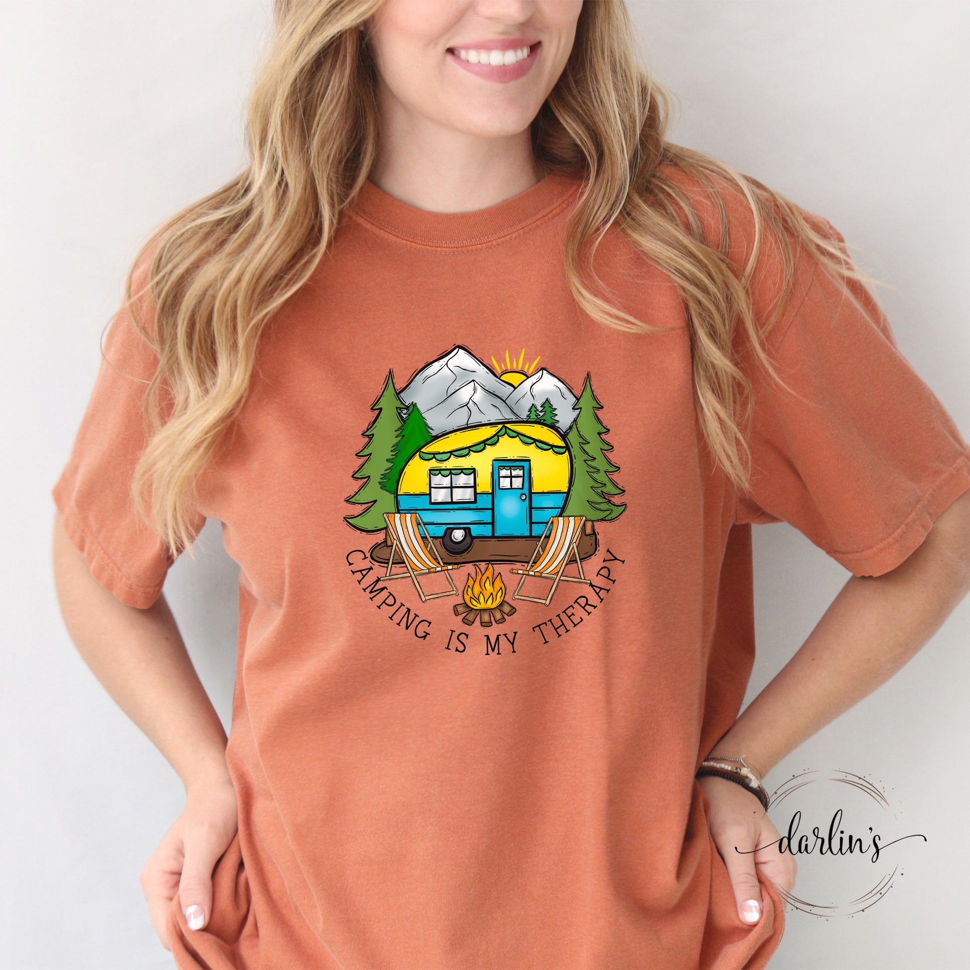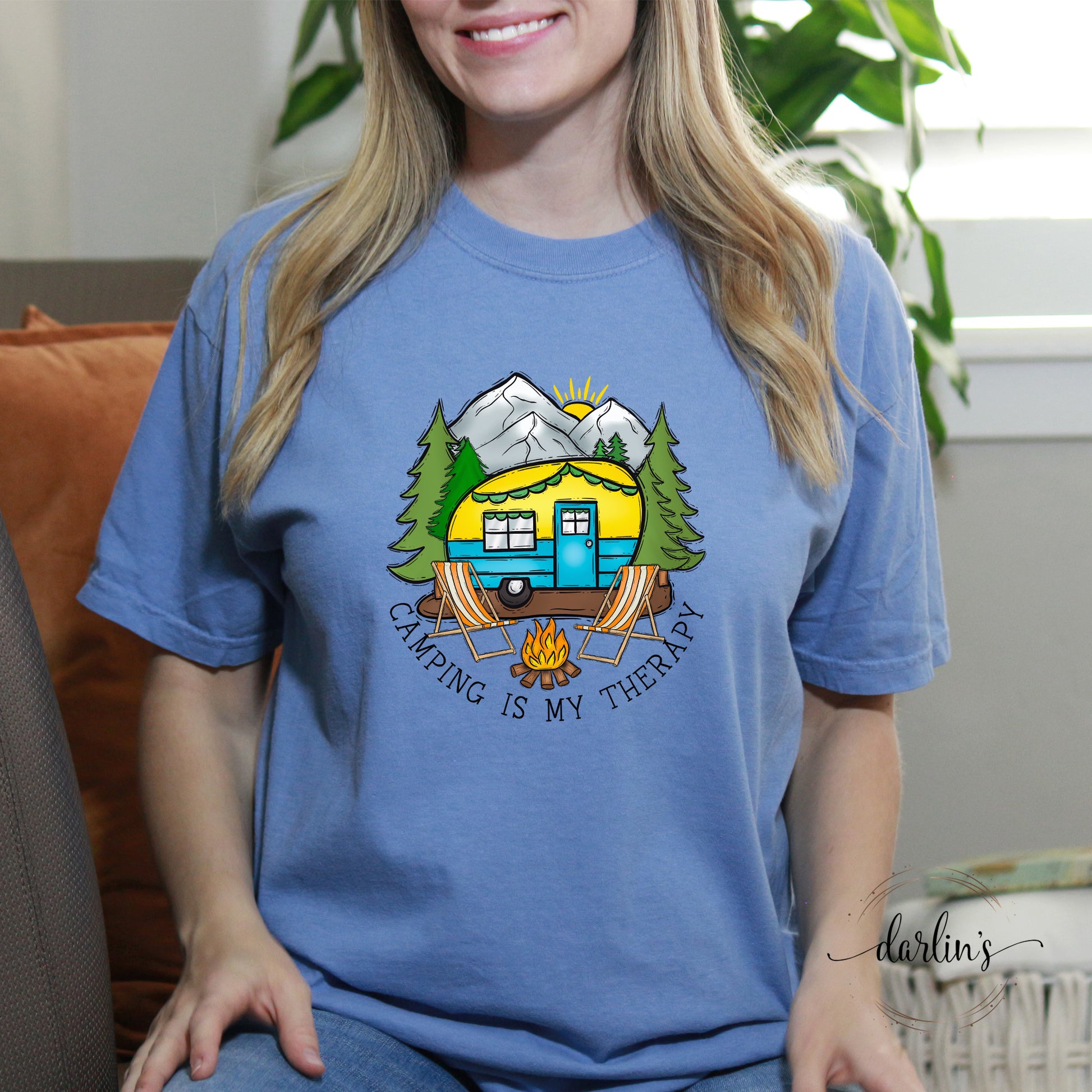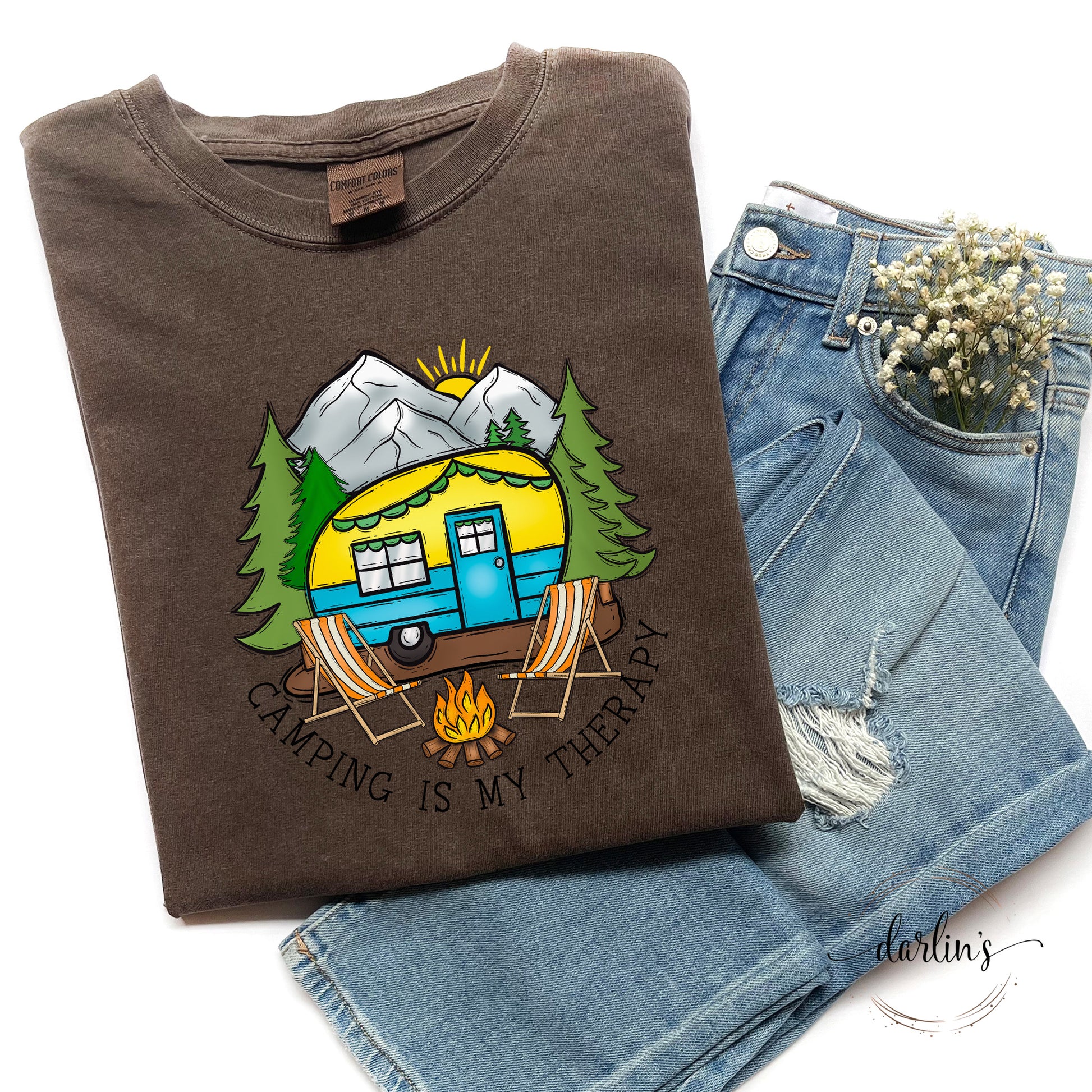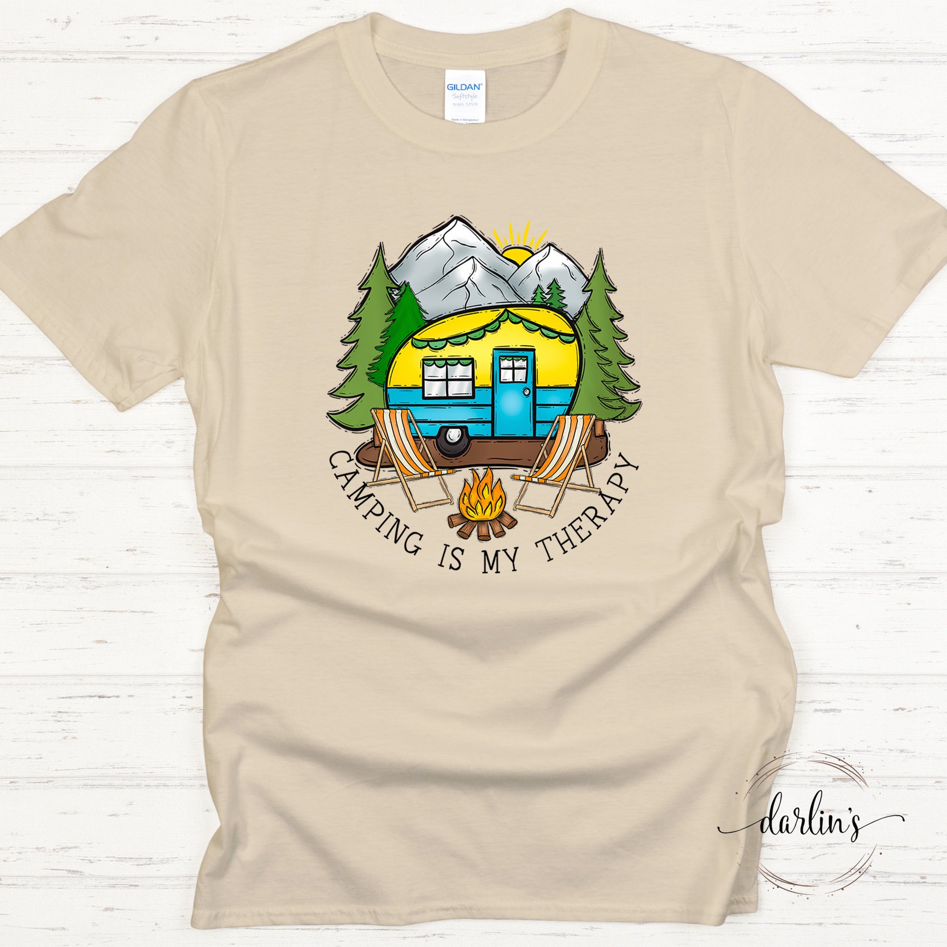 Celebrate your love for nature with the "Camping Is My Therapy" shirt, designed for those who recharge their spirit under the open sky. This playful shirt captures the joy and calm that camping brings, making it an ideal choice for outdoor enthusiasts who see the wilderness as their personal retreat. Whether you're around the campfire or exploring new trails, this shirt adds a fun touch to your adventure wardrobe.