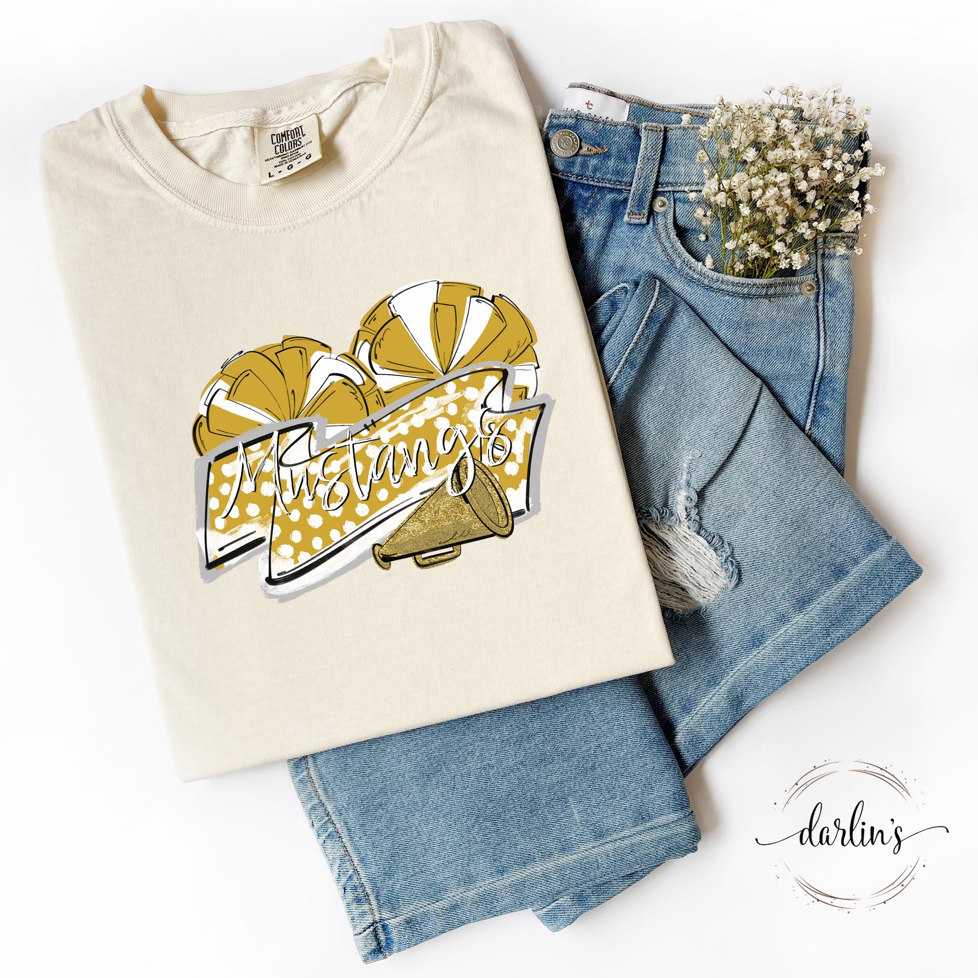 Show your Mustang spirit with this playful Cheer Banner Shirt with a Gold design.