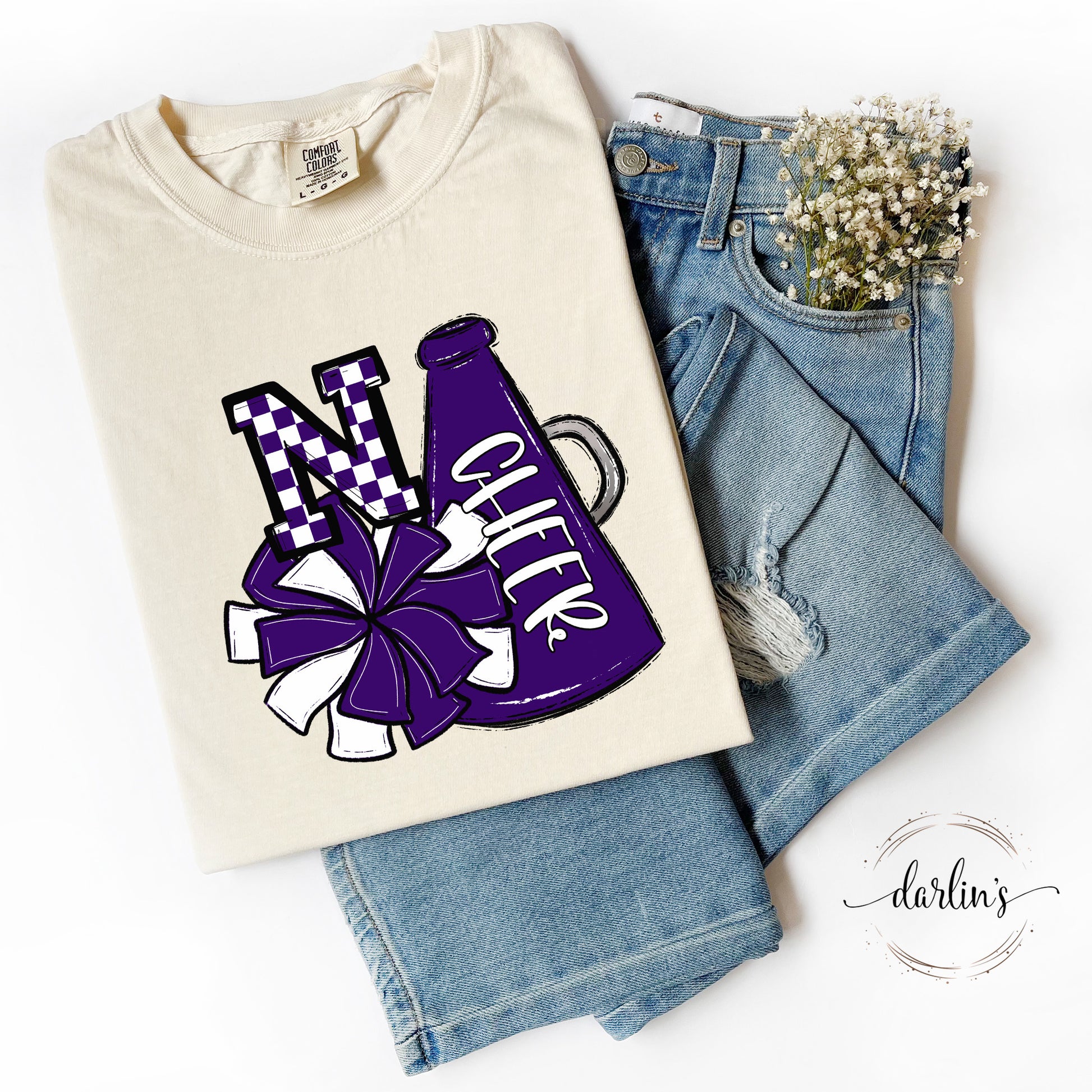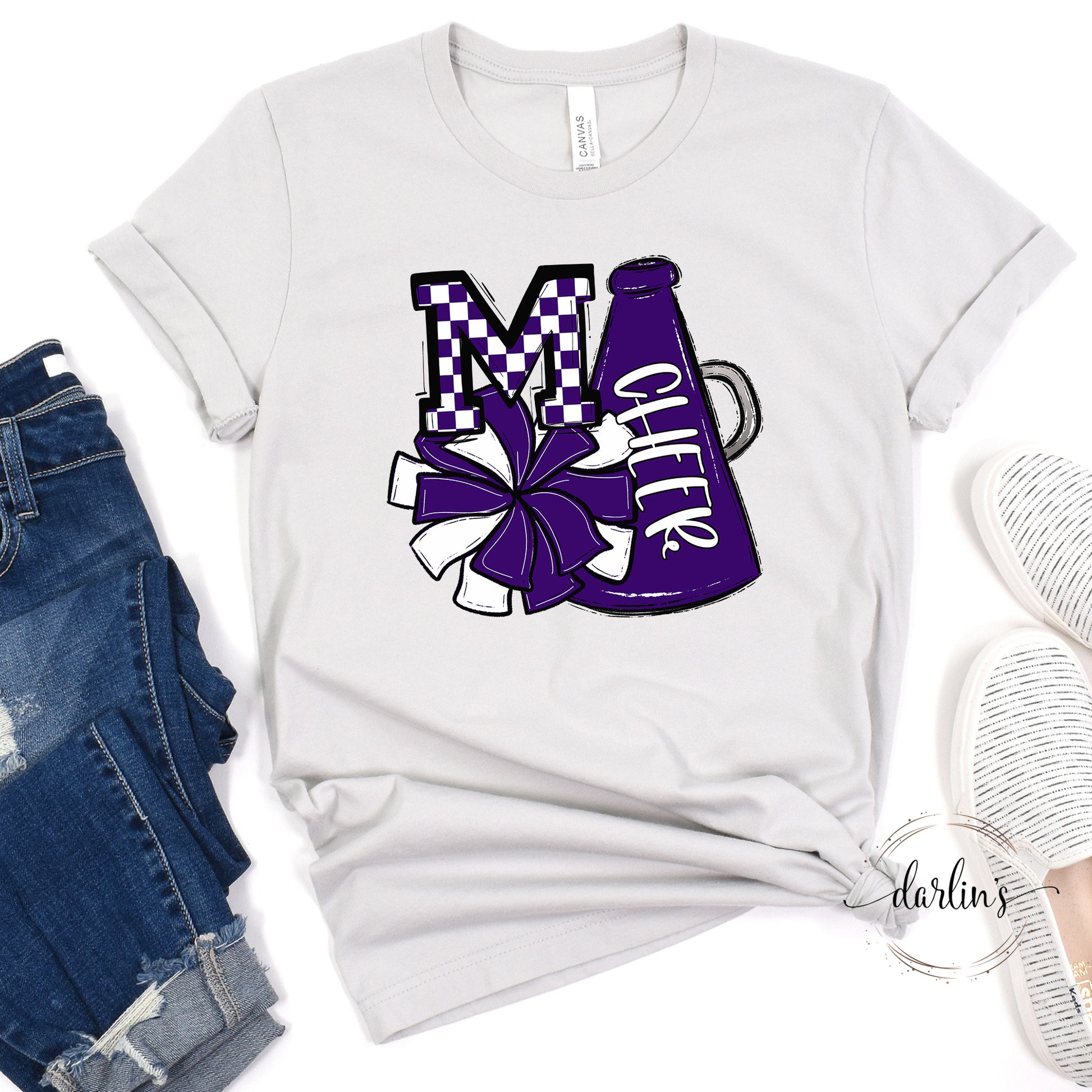 Show your spirit with this lively Purple Pom and Megaphone shirt! Ideal for boosting energy and bringing excitement to any gathering. Personalize it with your chosen letter—whether it’s your mascot, school, favorite cheerleader or player’s initial—for a fun, custom touch.