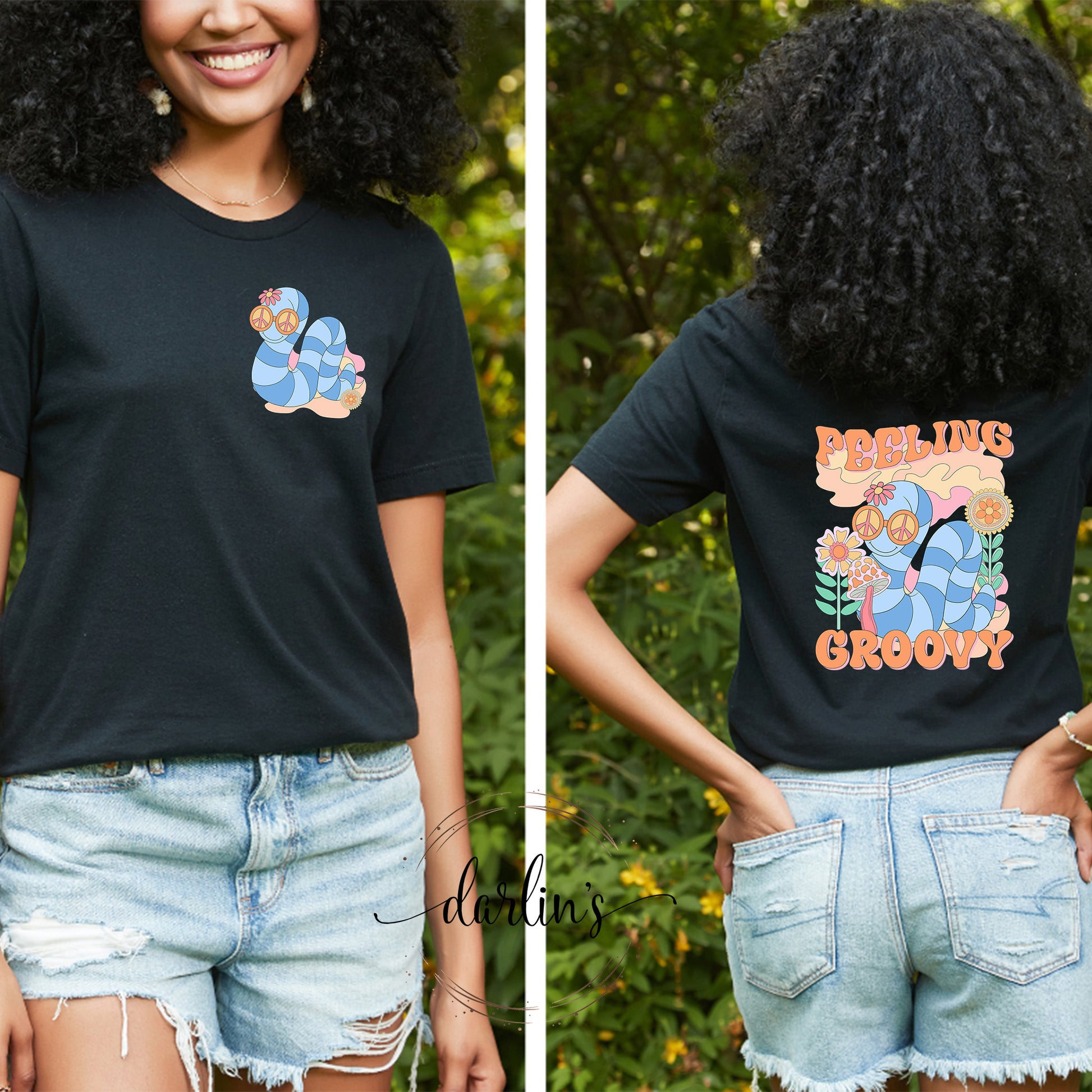 Embrace the good vibes with our Feeling Groovy design, with a front pocket design for added style.