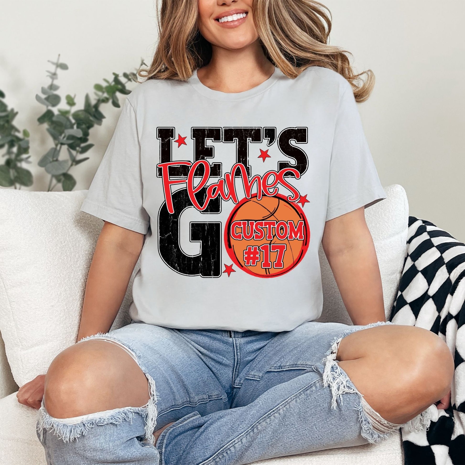 Show off your Flames pride in style with this customizable basketball shirt that's made just for you! Personalize it with your name, number, school initials, or any message that matters—the possibilities are endless. Perfect for game day, team events, or everyday wear, this tee turns you into a walking billboard for your squad's spirit. Let your personality pop and rally your teammates with a shirt that's as unique as you are!