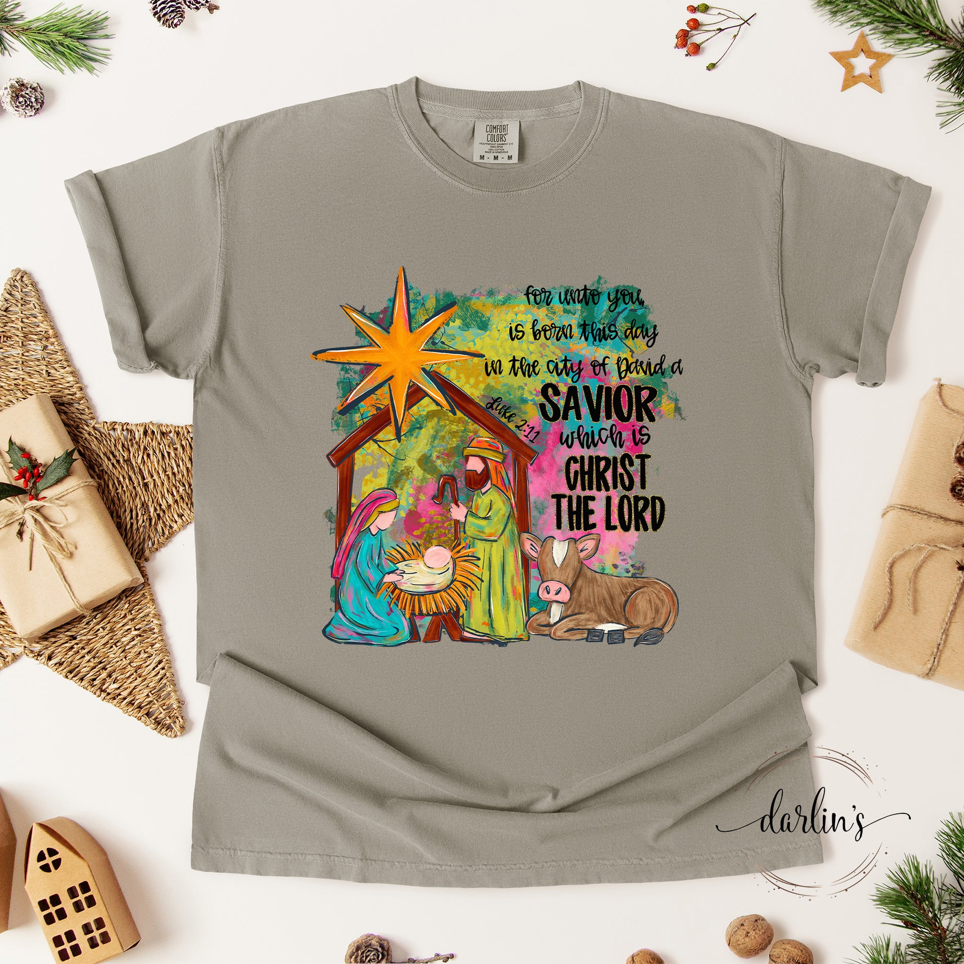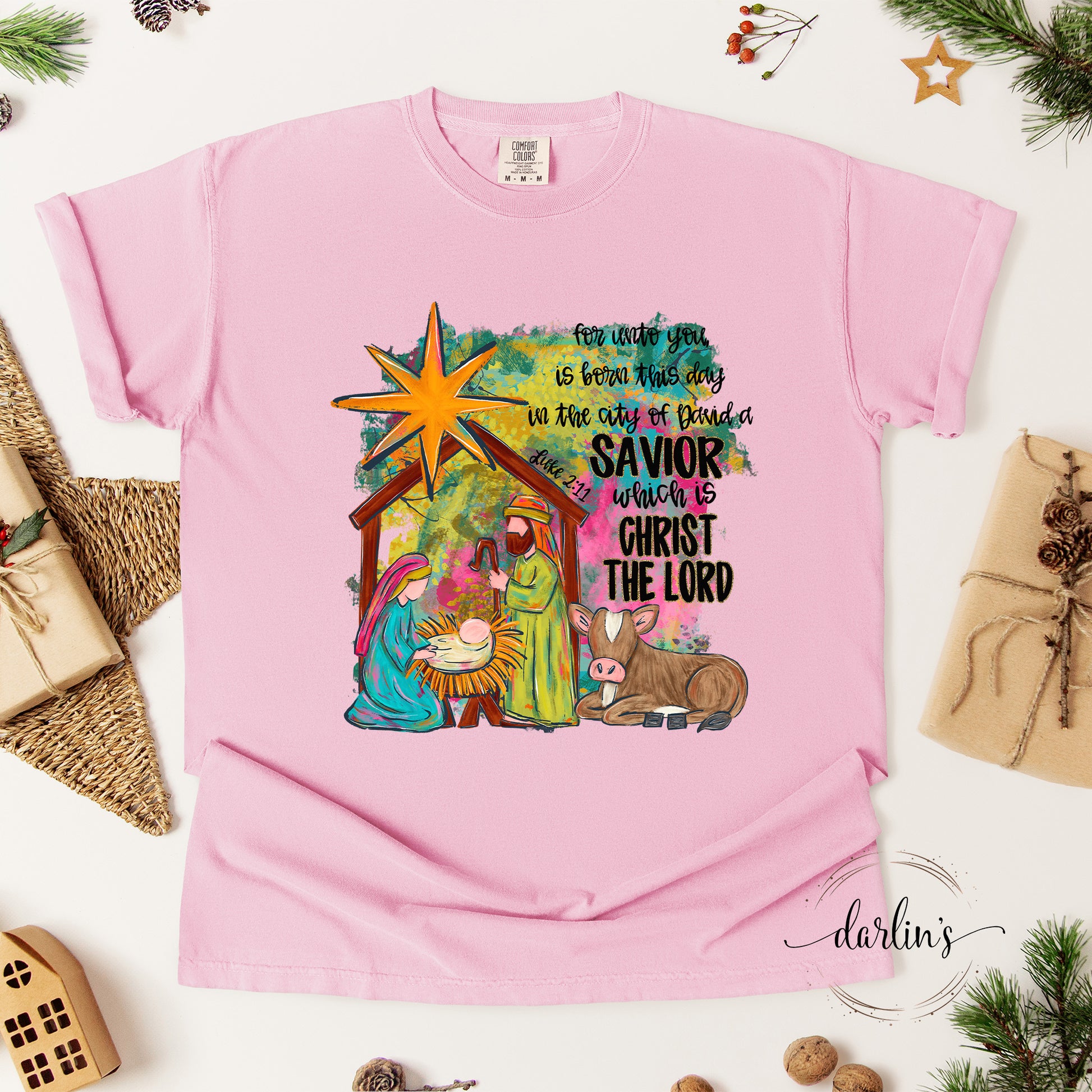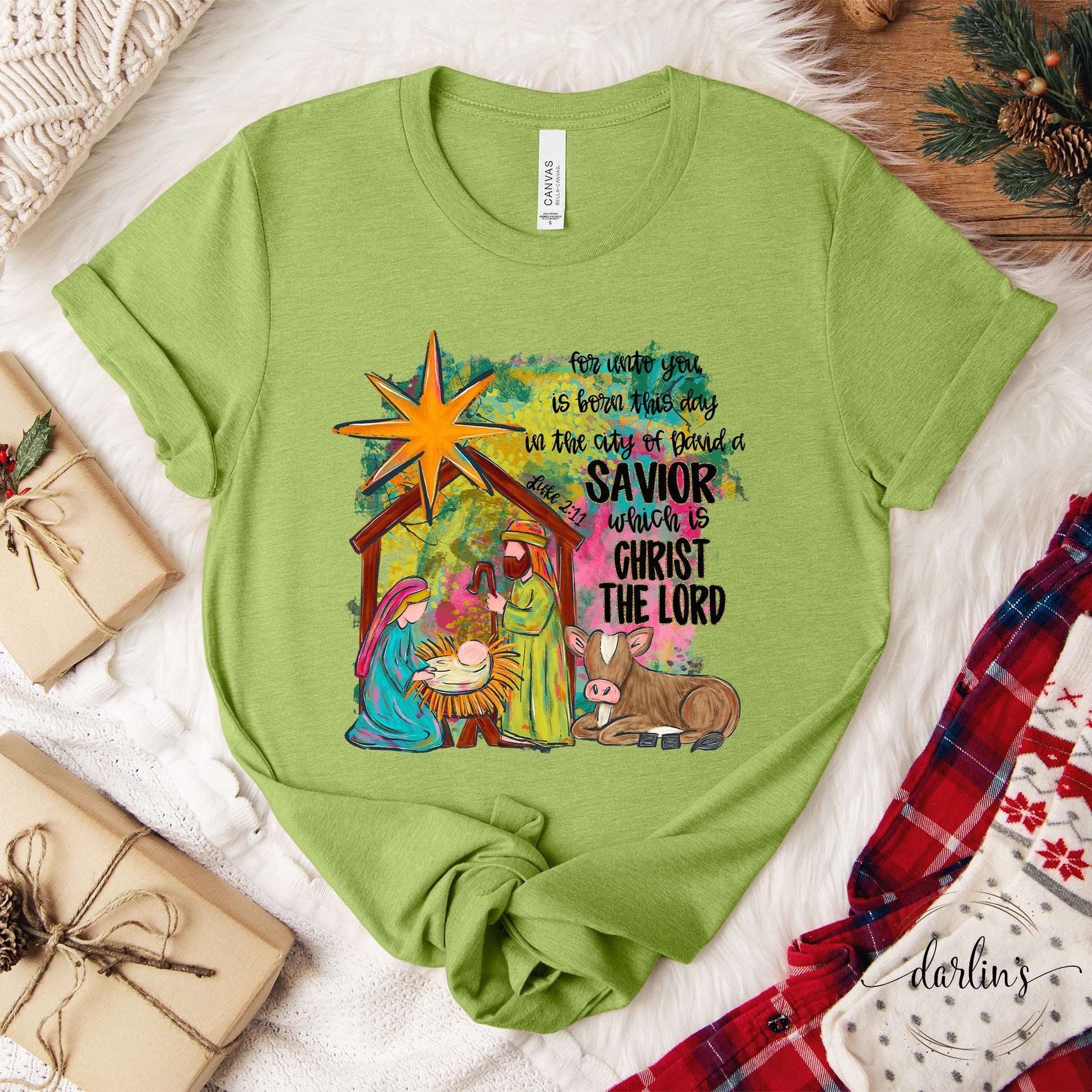 Turn heads with the For Unto You Is Born This Day Shirt. Easy to style with jeans or leggings.