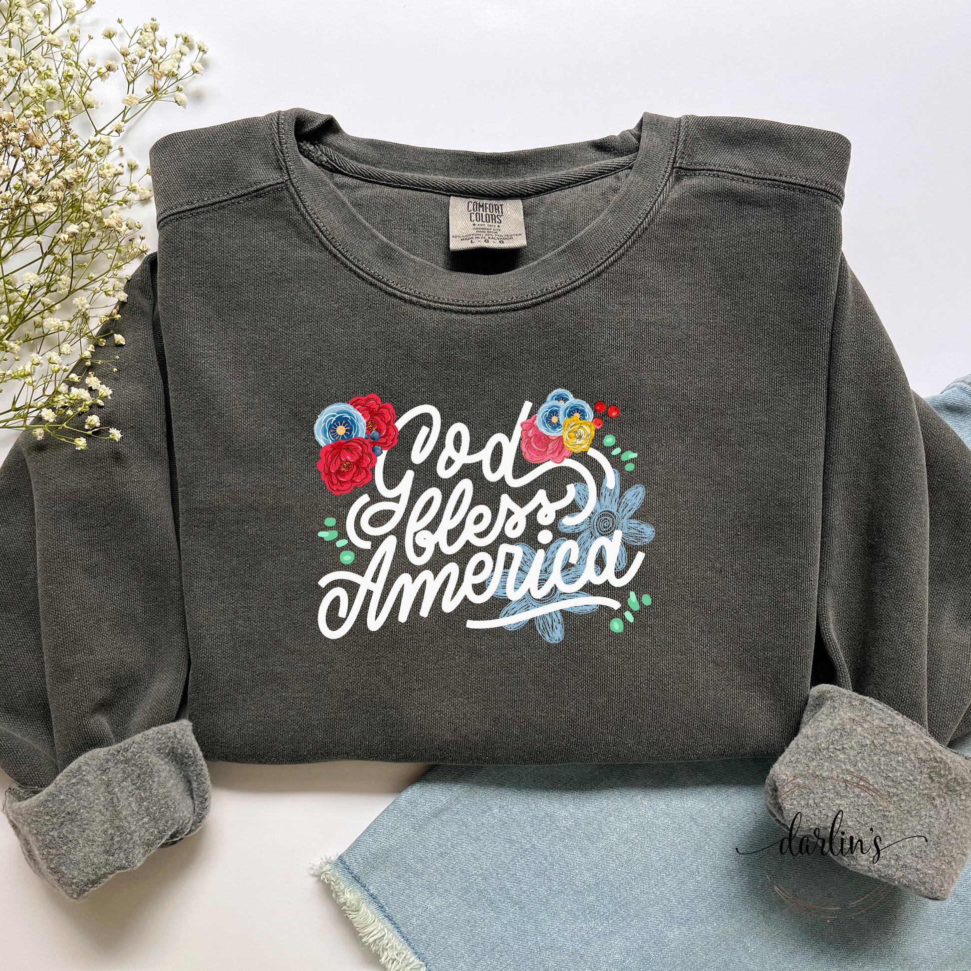 Celebrate your patriotic spirit with this fun God Bless America shirt featuring bold white lettering. Perfect for showing off your love for the USA in a playful way!