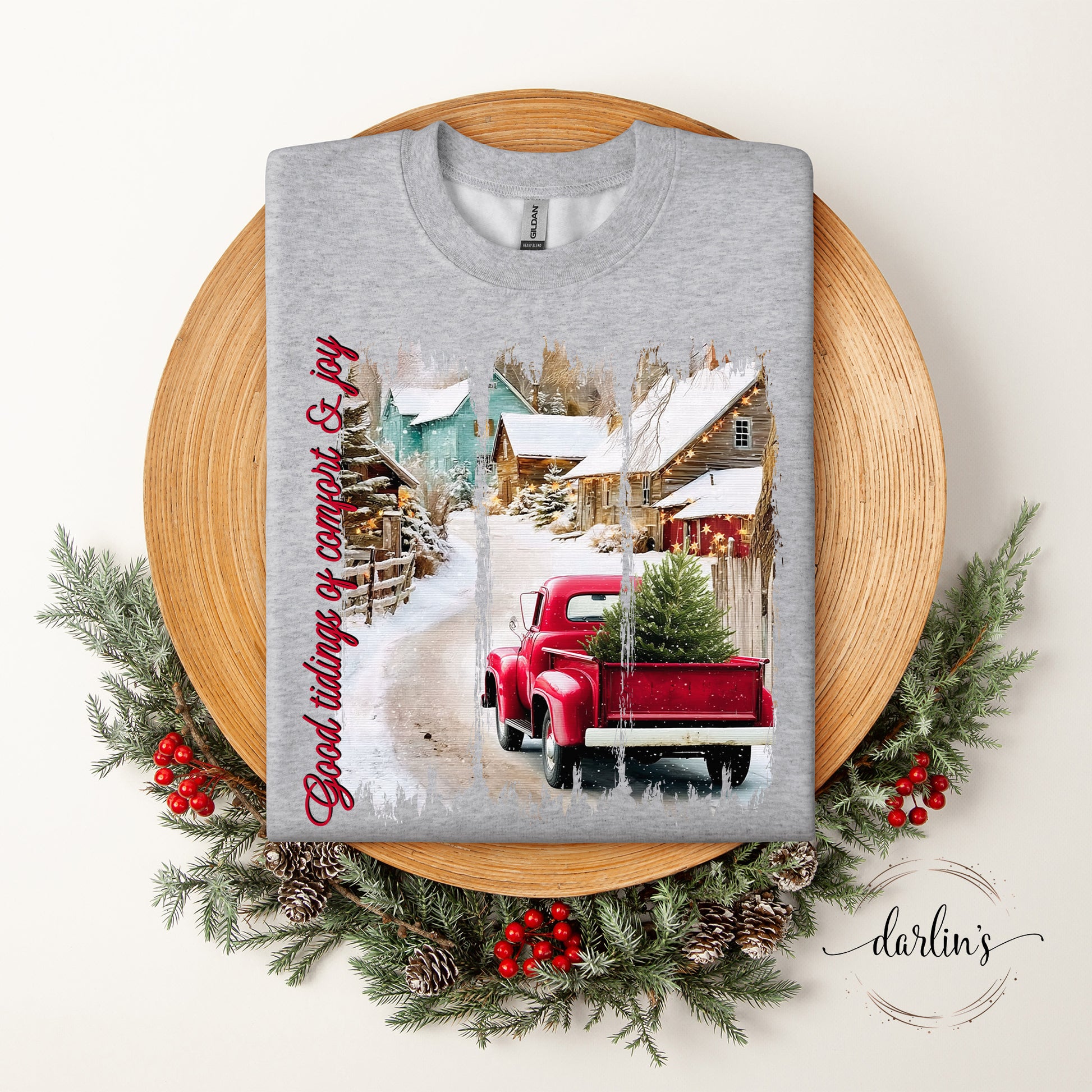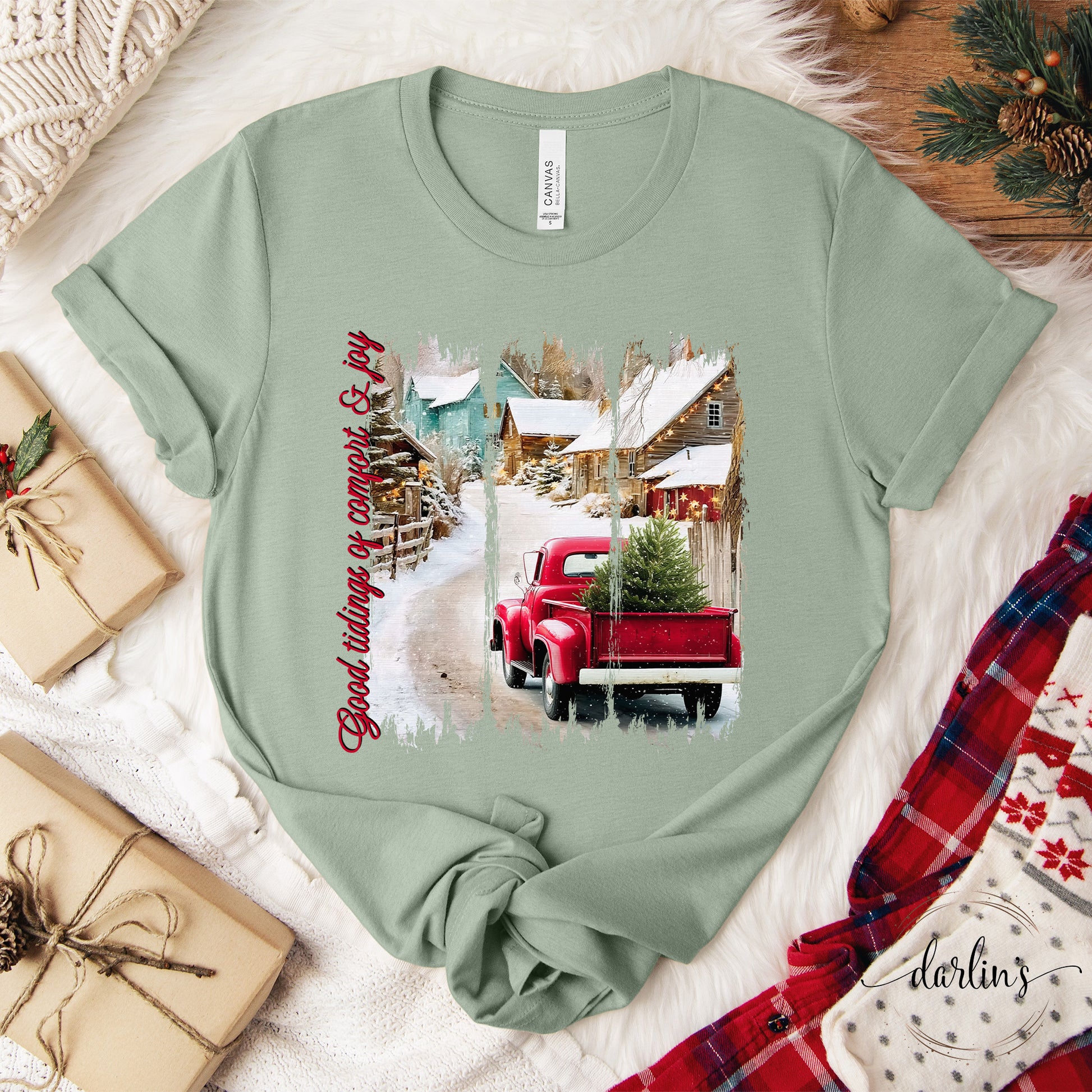 Our Good Tidings Of Comfort And Joy Shirt adds festive sparkle to your look. Cheerful vibes and cozy comfort all season long.
