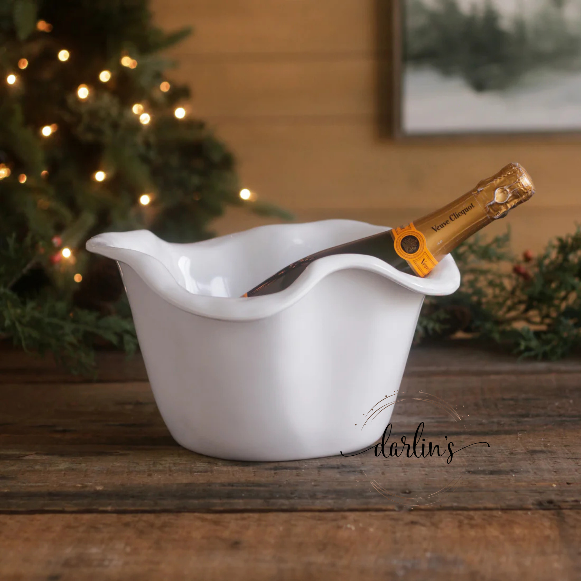 From the distinguished Havana Collection, this melamine ice bucket offers an elegant way to serve chilled wine. The VIDA Havana Ice Bucket blends the polished look of fine ceramics with the resilience of high-quality melamine. Adorned with a graceful pearl border, its ample size is designed to keep wine, beer, or soda perfectly chilled while providing guests with a refined and stylish presentation.