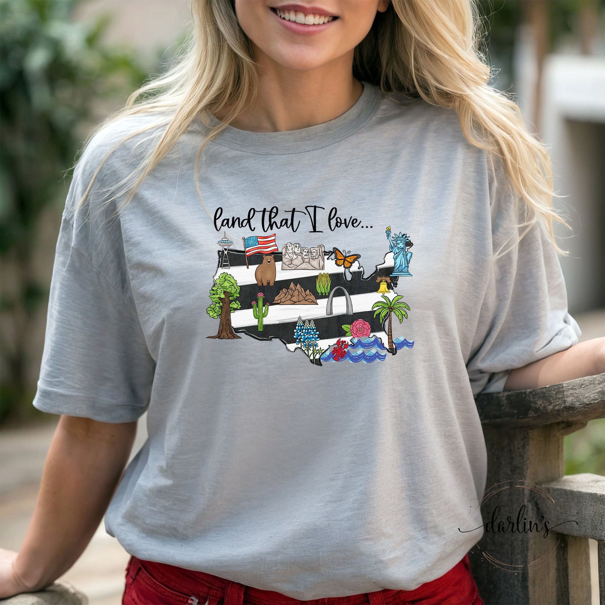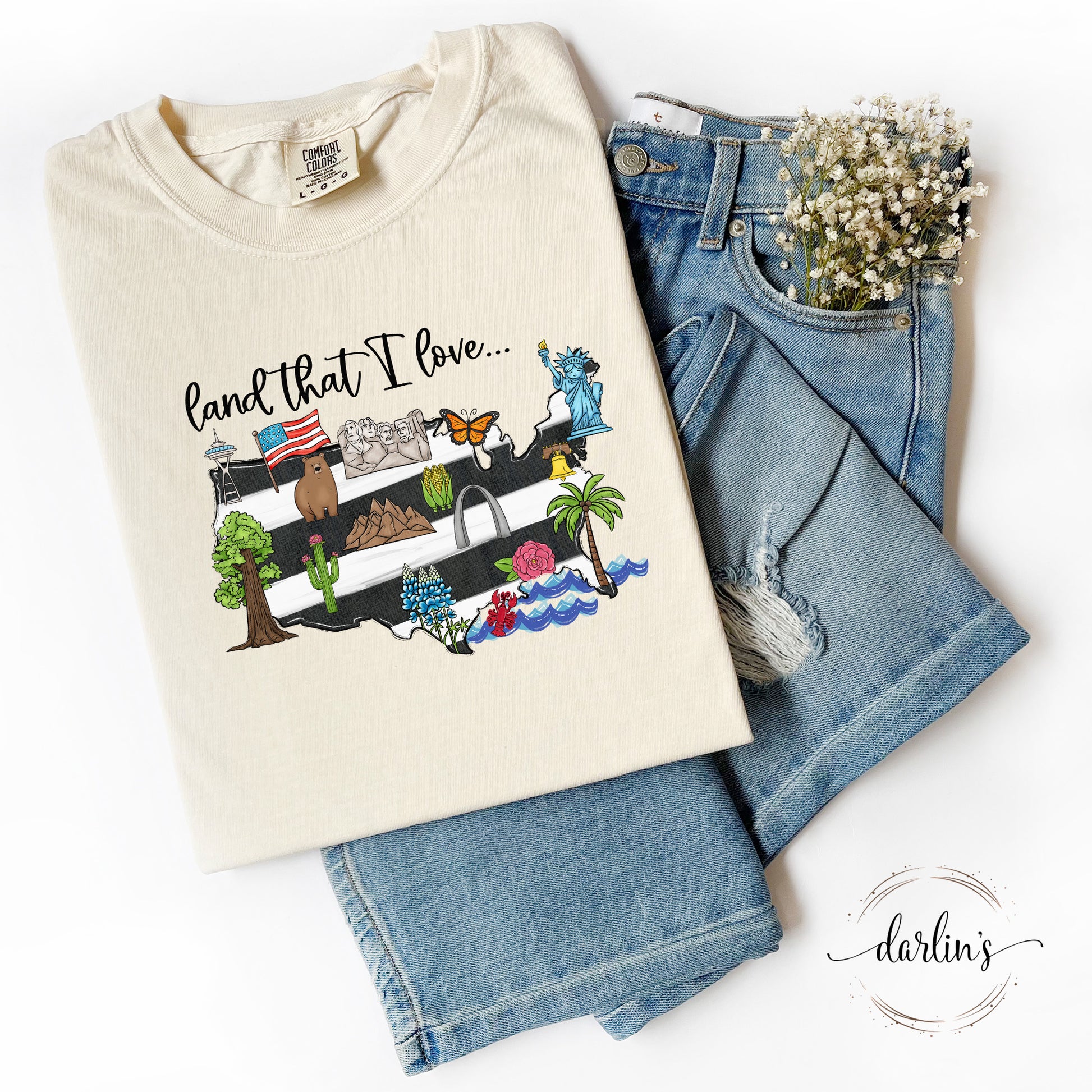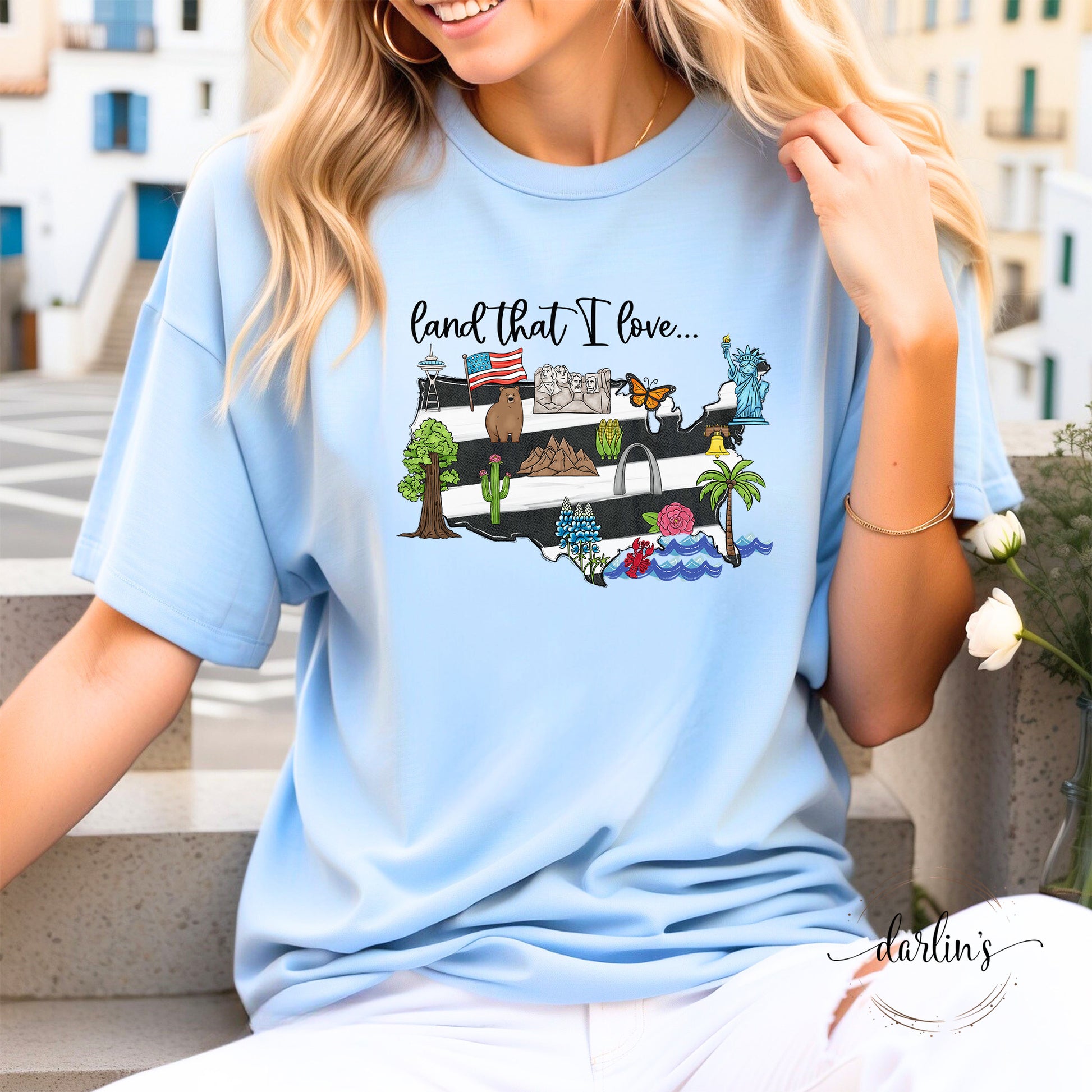 Show your love for the homeland with this playful Land That I Love shirt, perfect for adding a cheerful vibe to your outfit.