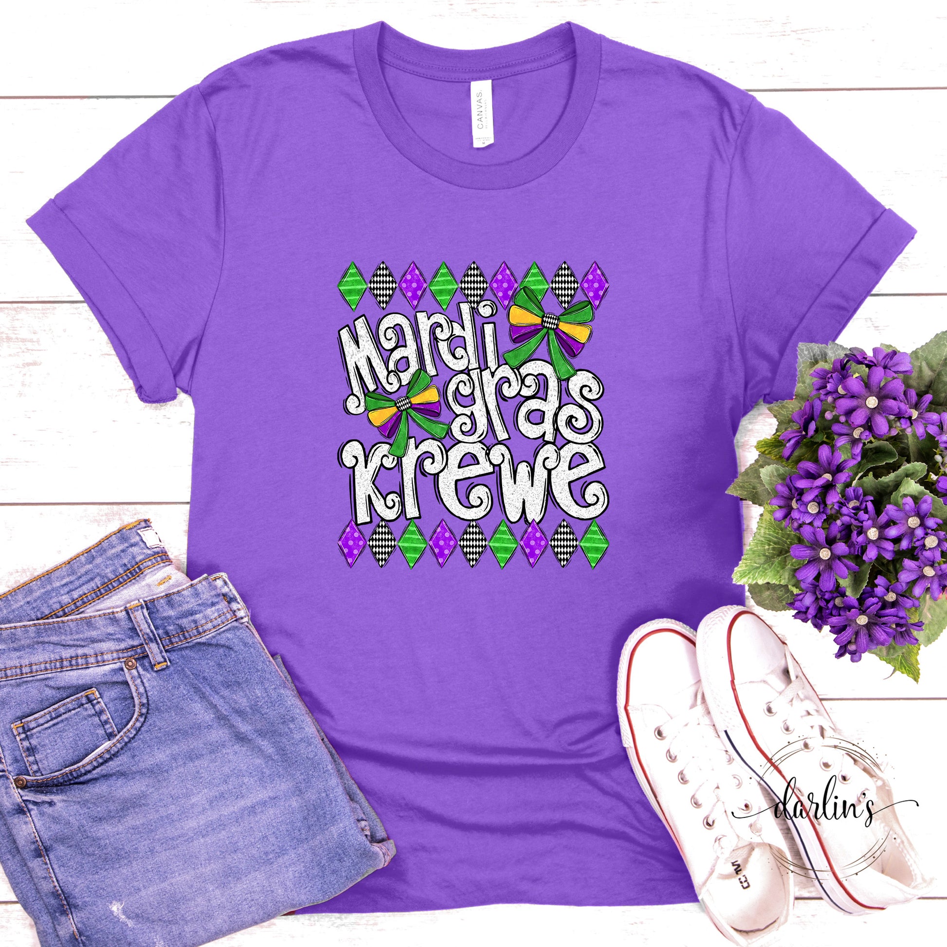Brighten your day instantly with the Mardi Gras Krewe Shirt! Perfect with jeans, leggings, or your comfiest sweats. A playful staple you'll reach for nonstop!