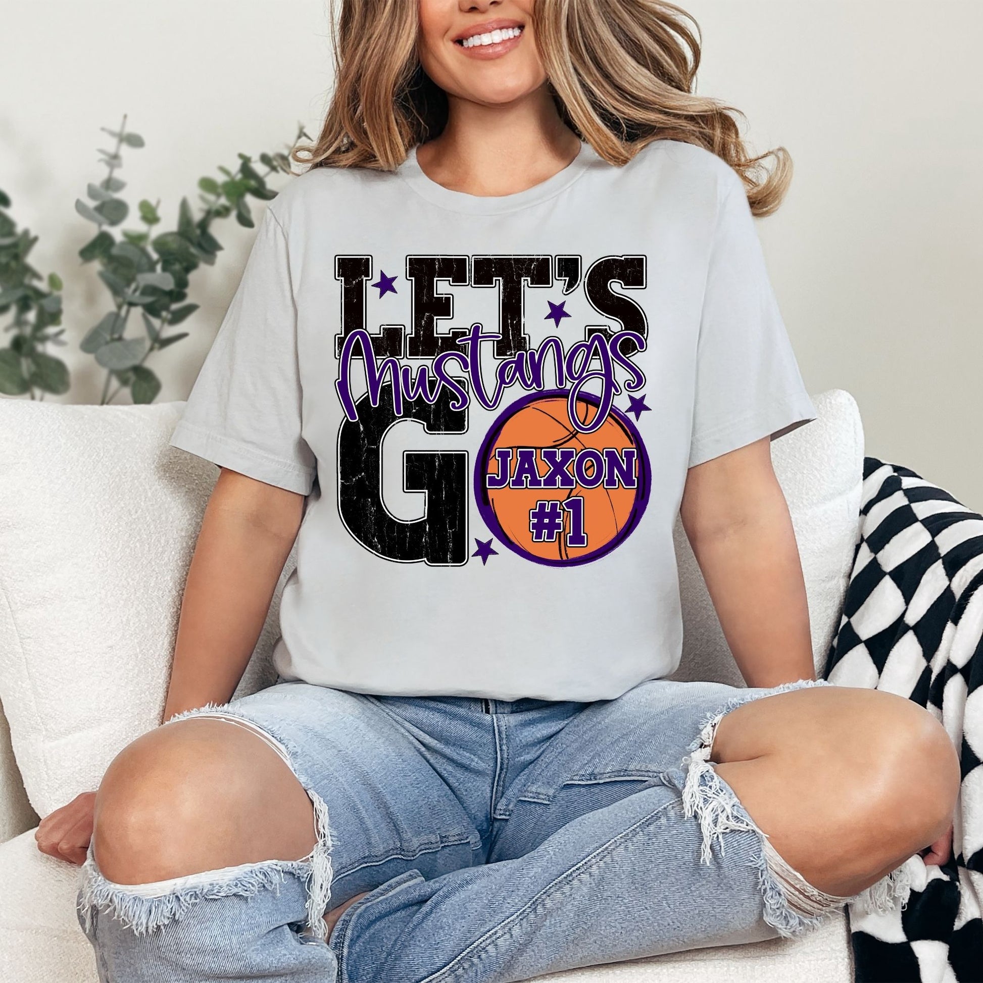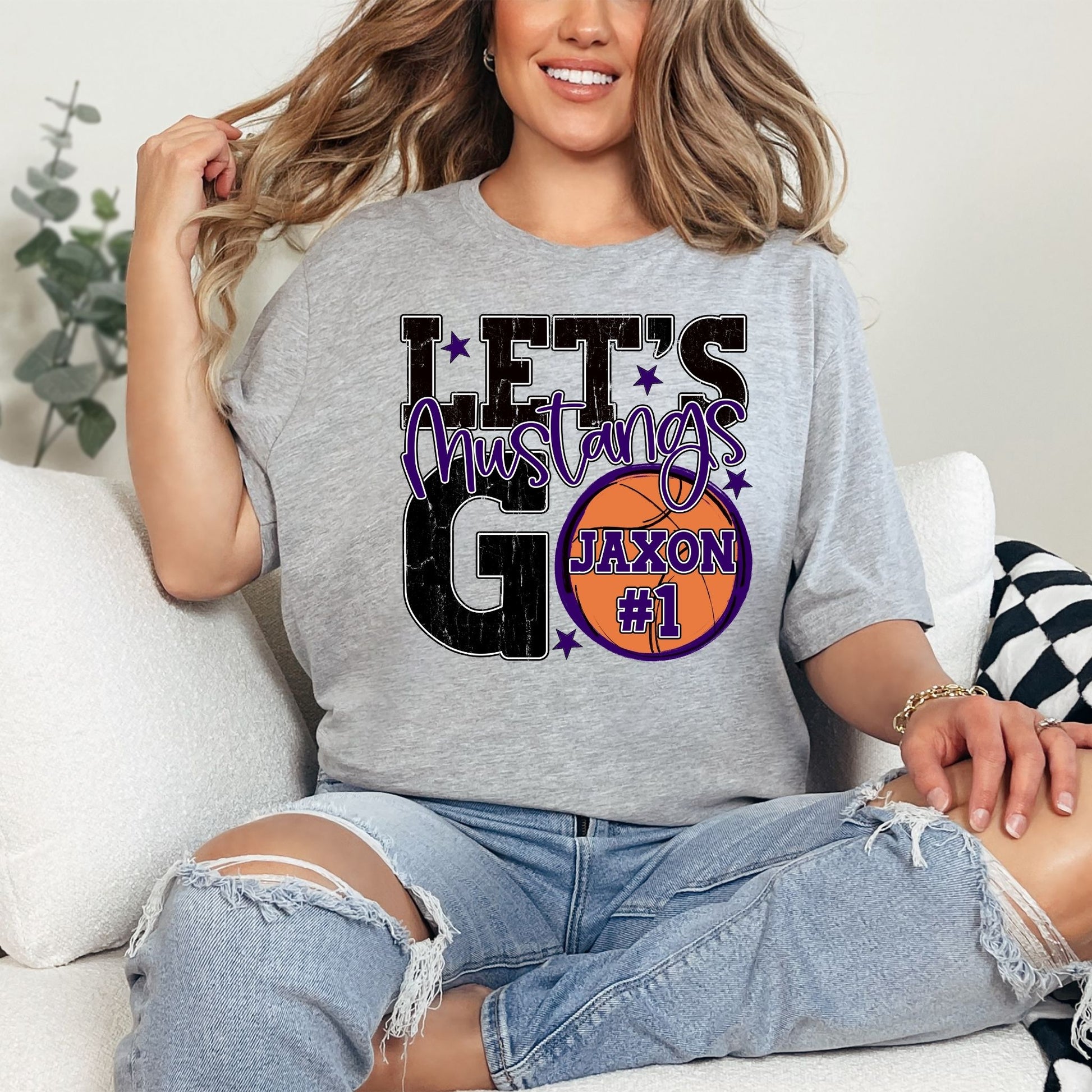 Show off your Mustang pride in style with this customizable basketball shirt that's made just for you! Personalize it with your name, number, school initials, or any message that matters—the possibilities are endless. Perfect for game day, team events, or everyday wear, this tee turns you into a walking billboard for your squad's spirit. Let your personality pop and rally your teammates with a shirt that's as unique as you are!