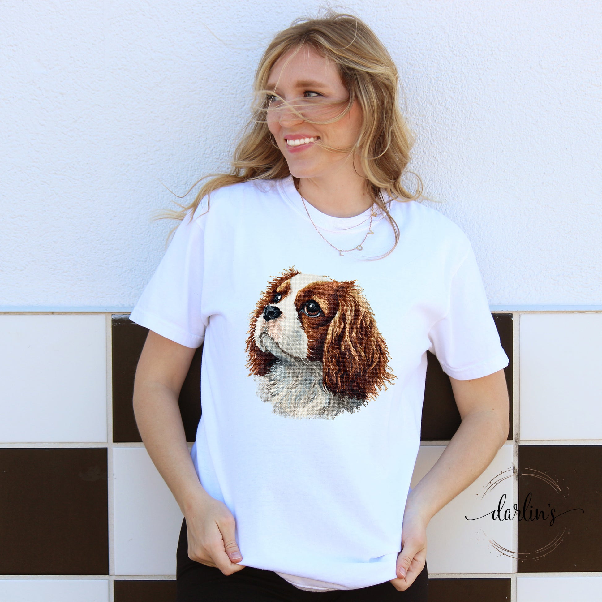 Spread good vibes in the Needlepoint Pets Cavalier Spaniel Shirt! A must-have blend of comfort and charm. Guaranteed to make you smile every time you wear it.