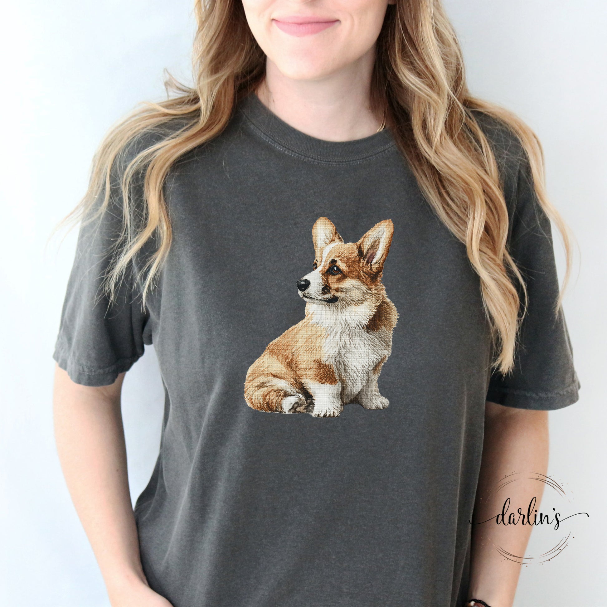 Show off your cute style in the Needlepoint Pets Corgi 2 Shirt! A must-have blend of comfort and charm. An easy favorite you'll want in every color.