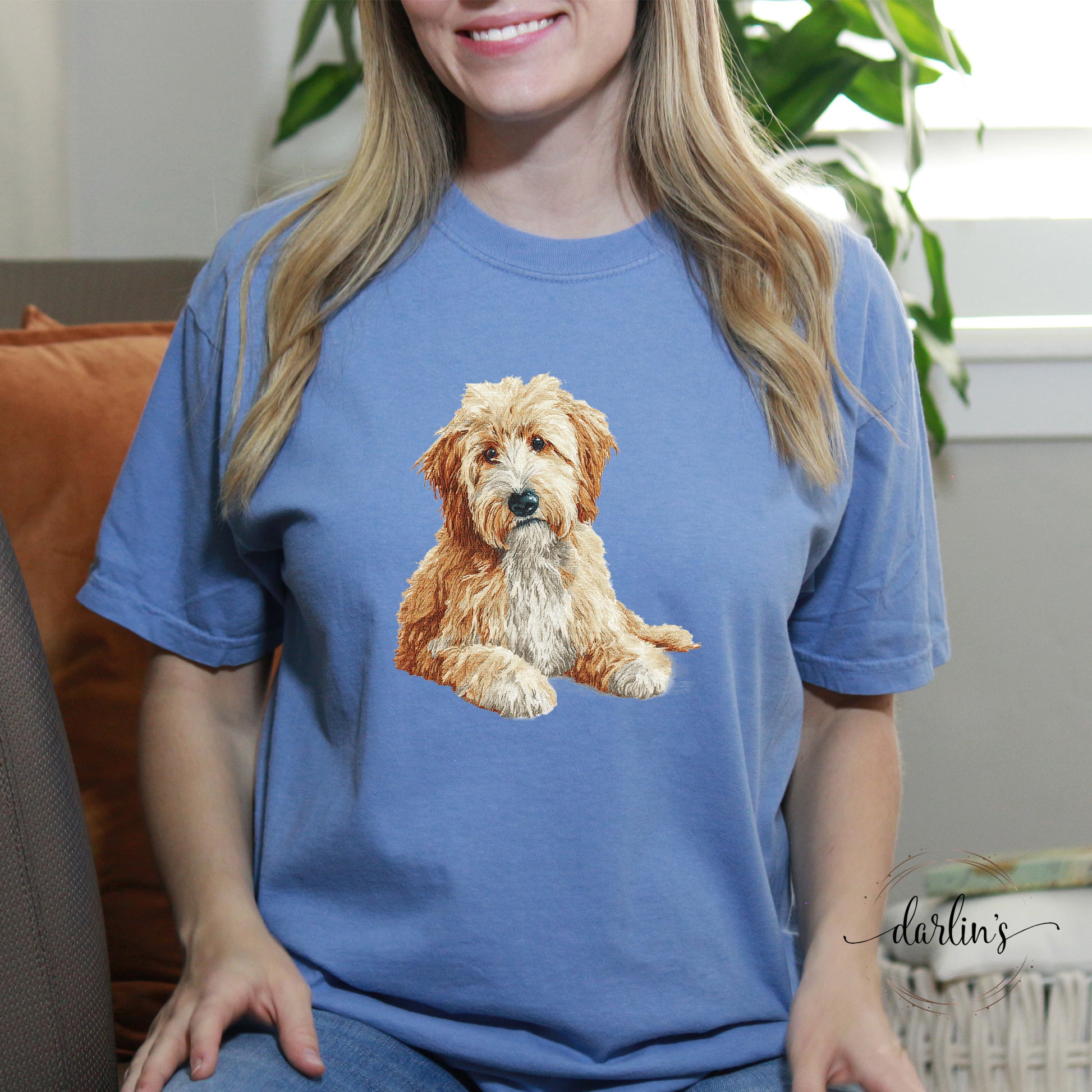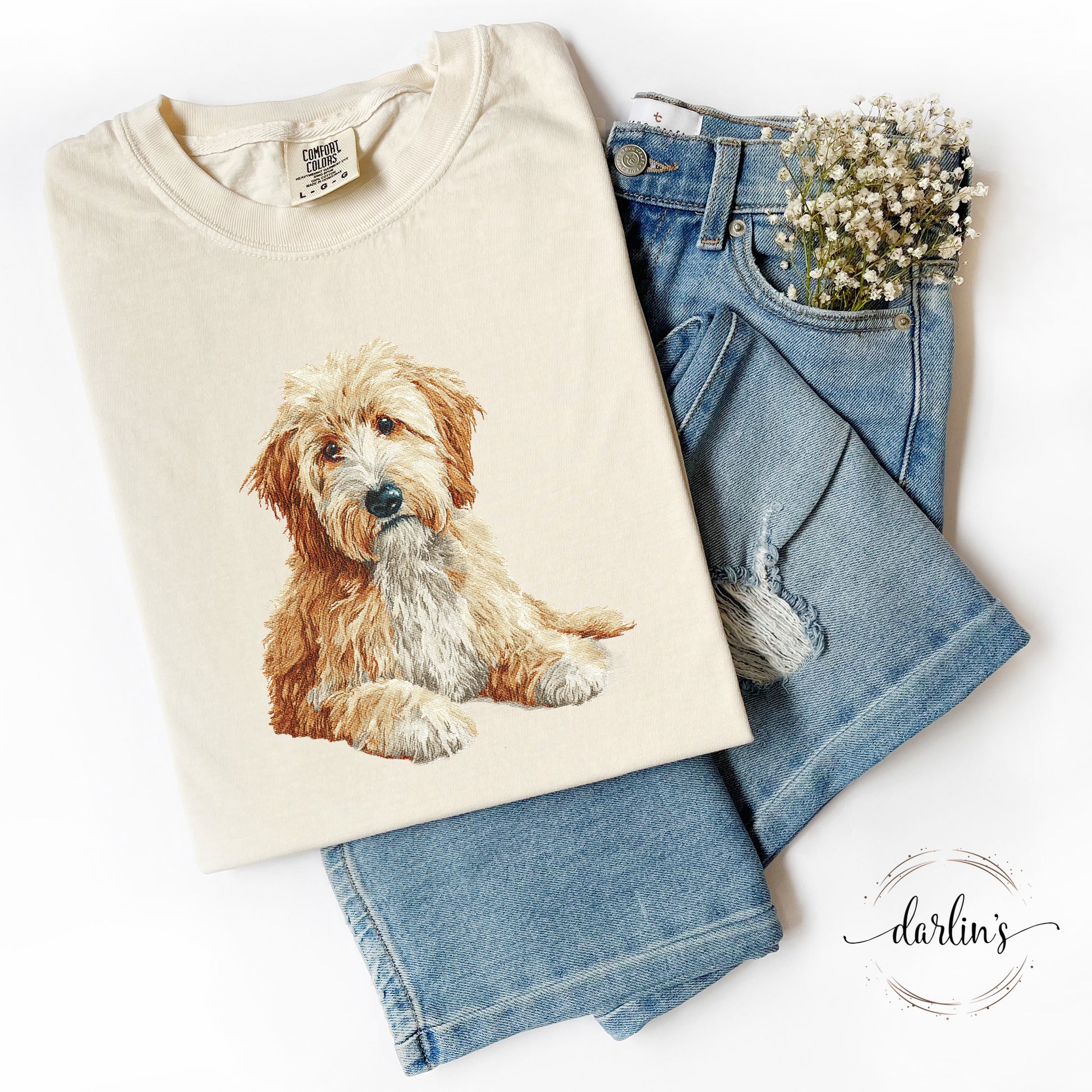 Bring playful charm to your day with the Needlepoint Pets Golden Doodle 2 Shirt! Easy to wear and full of personality. A simple little mood boost for your closet.