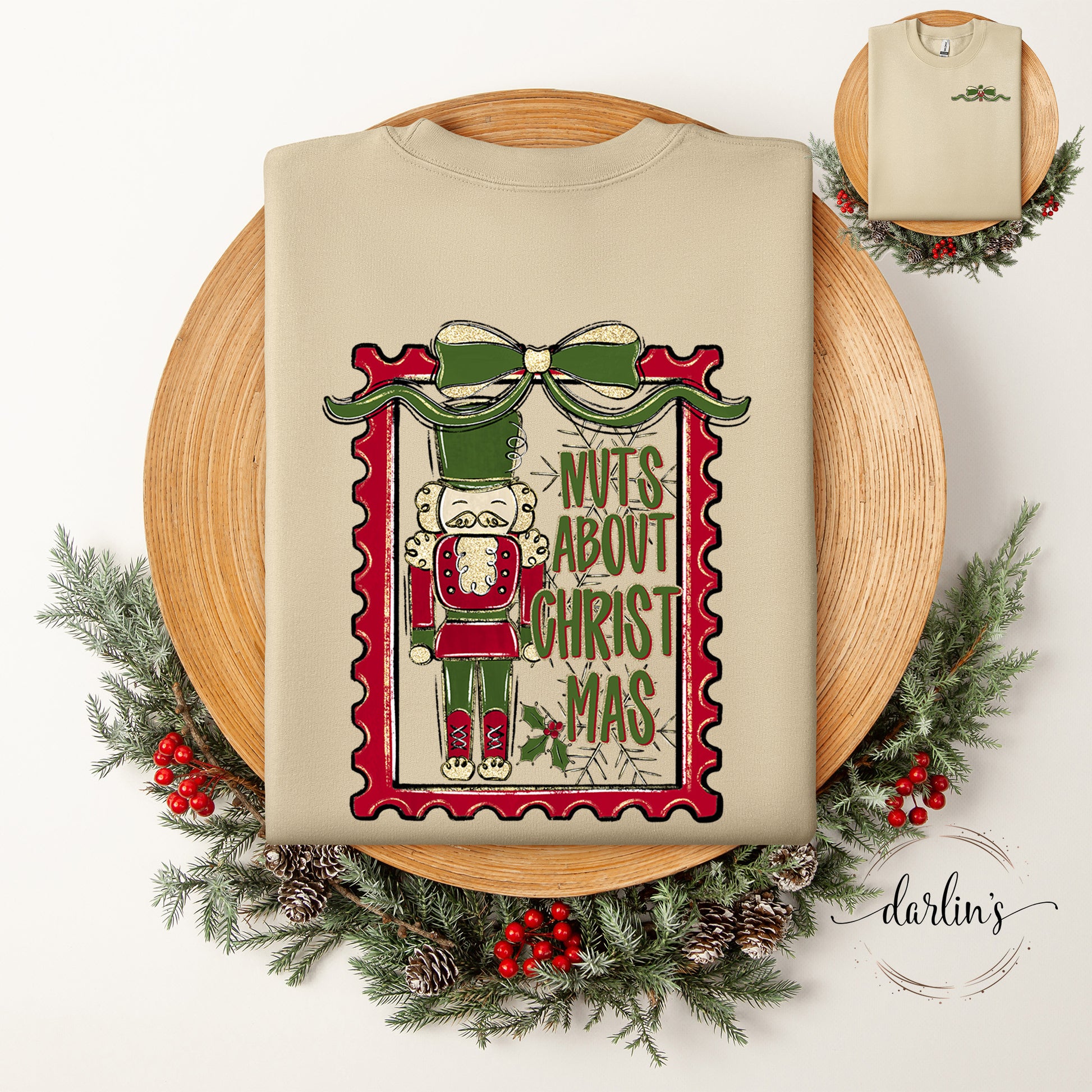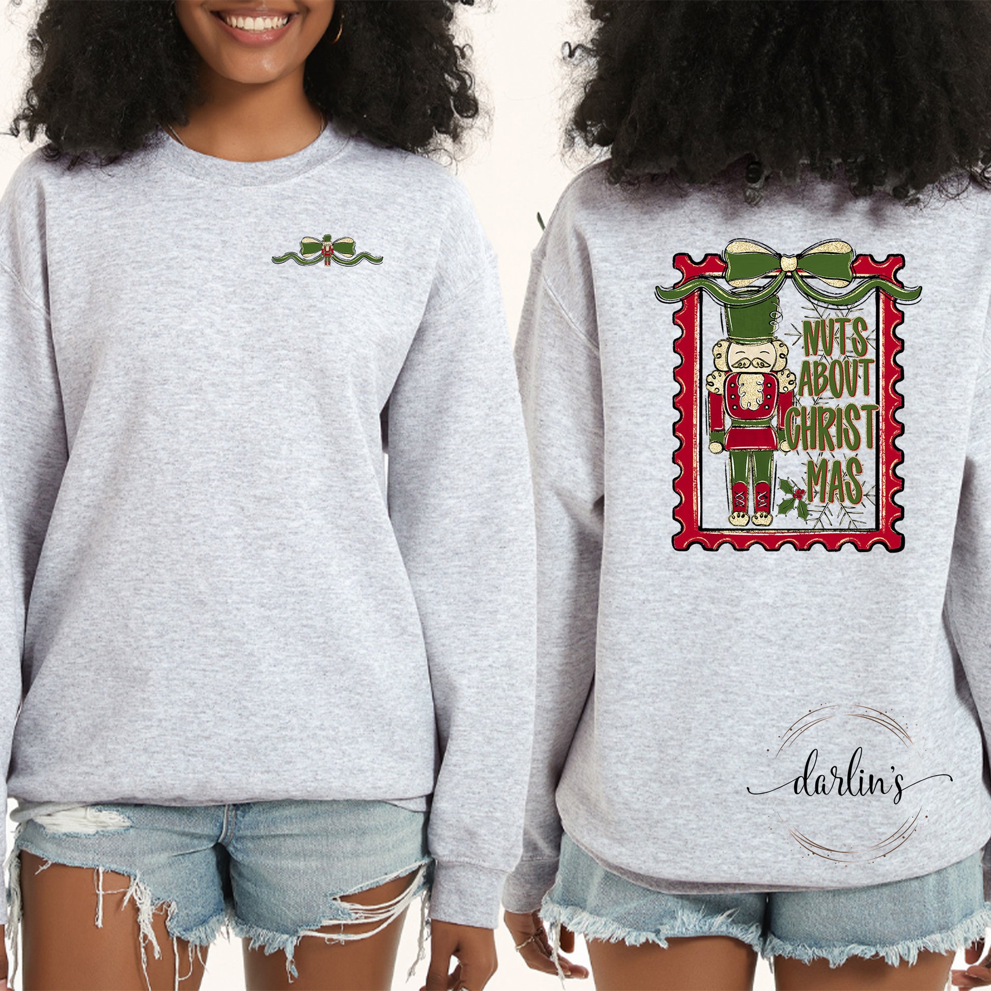 Nuts About Christmas Light Shirt - Front Pocket And Back Designs