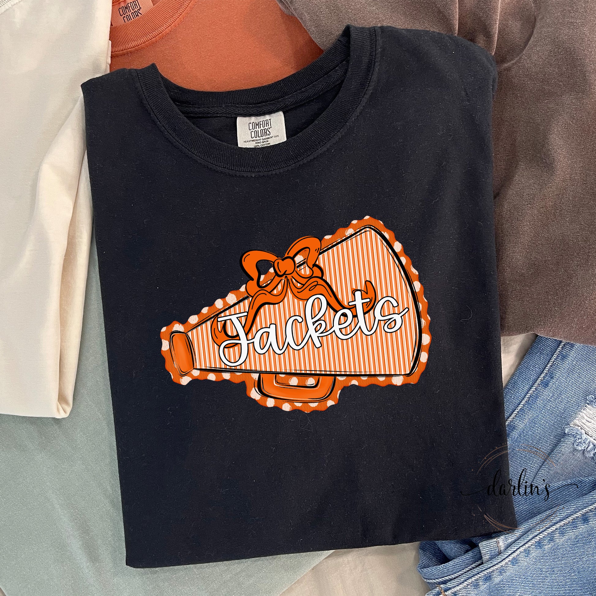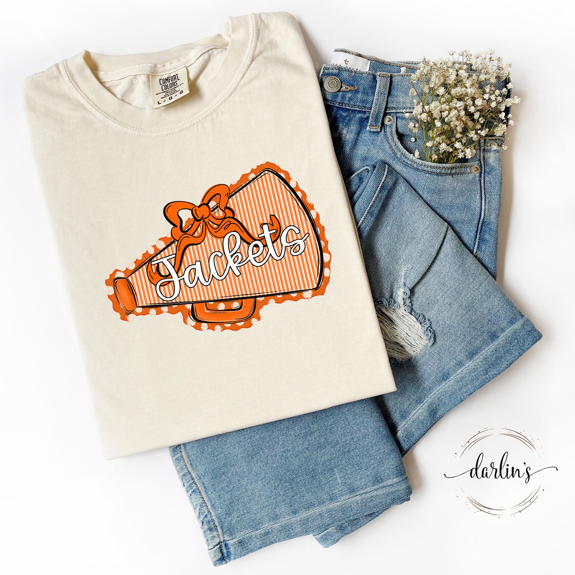 Get ready to cheer on your Jackets in style with the Prepster Megaphone And Bow shirt. This playful shirt showcases a lively graphic design that captures the spirit of your team, making it the perfect choice for game days or casual wear. Comfortable and eye-catching, it’s designed to keep your enthusiasm shining while you support your Jackets with pride. Whether you’re at the stadium or hanging out with friends, this shirt adds a fun and spirited touch to your outfit.