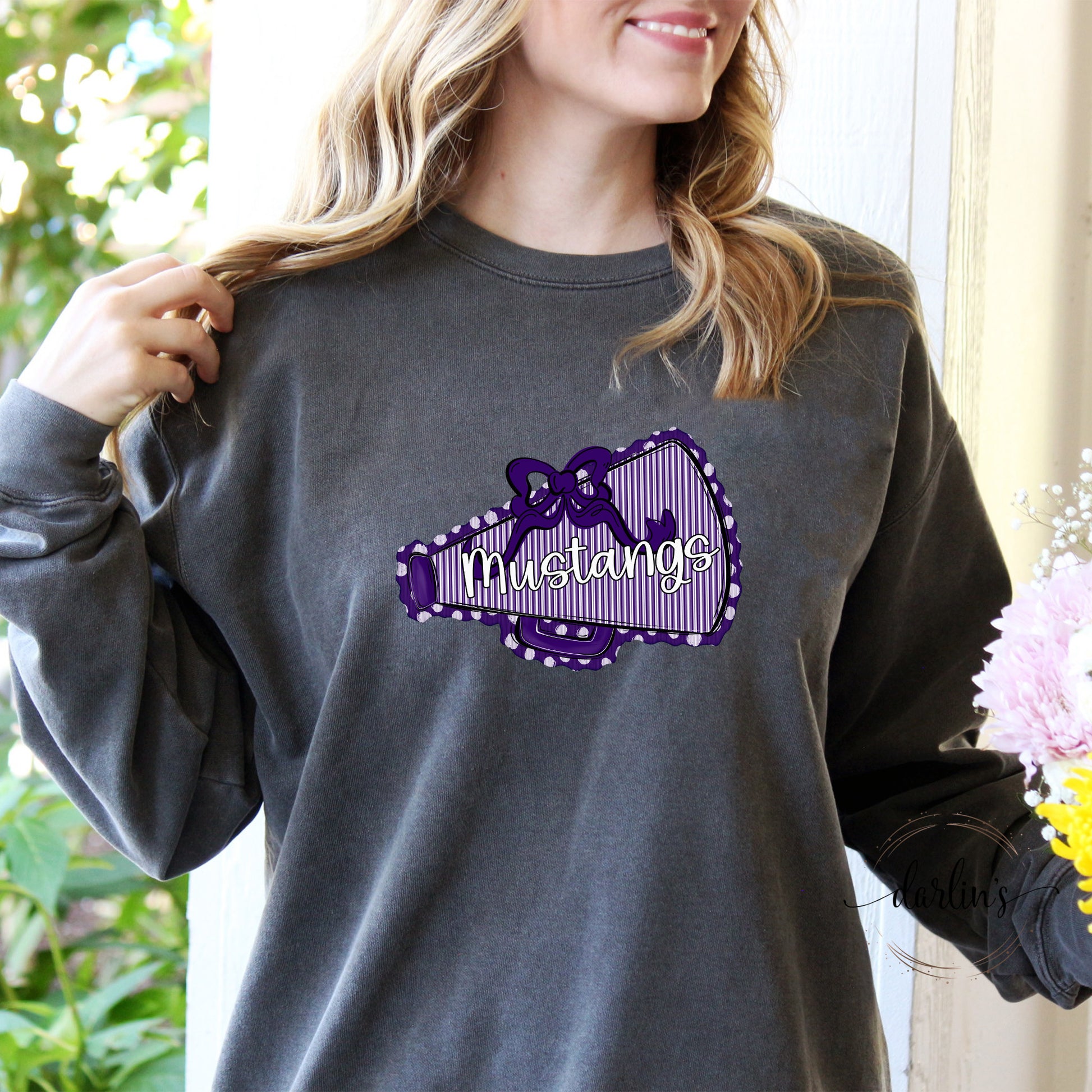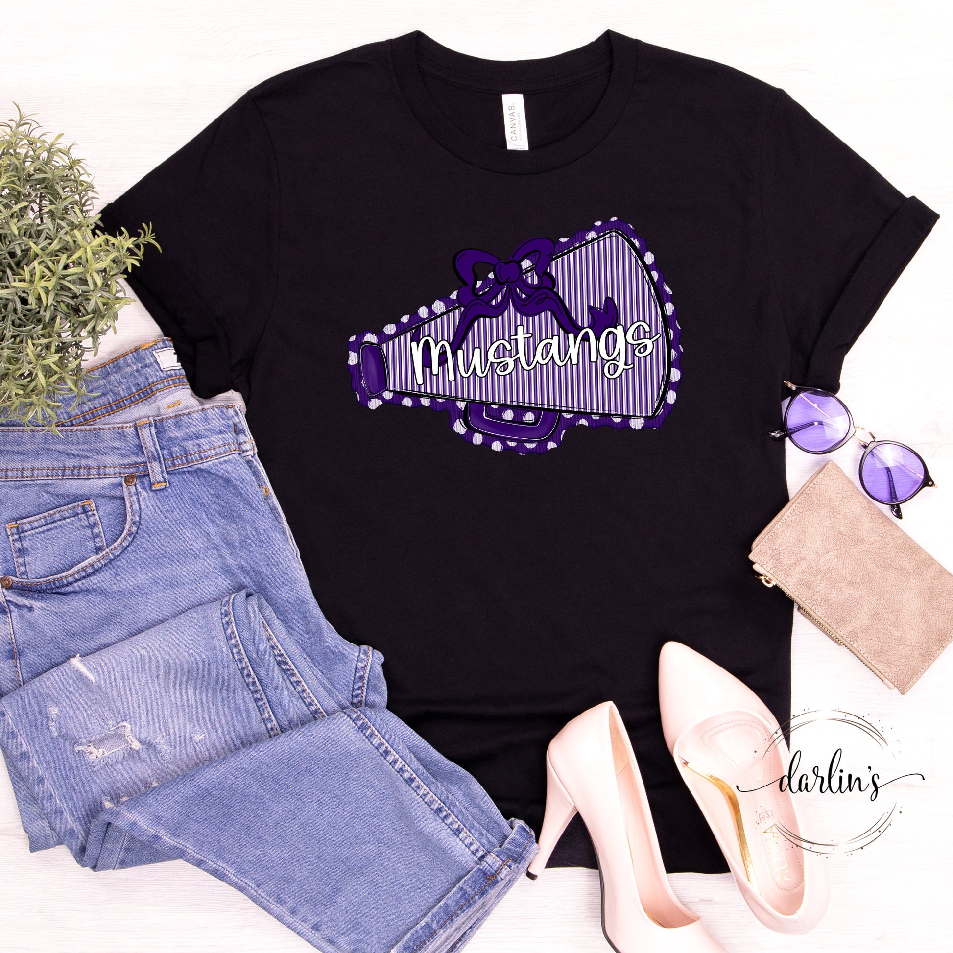 Get ready to cheer on your Mustangs in style with the Prepster Megaphone And Bow shirt. This playful shirt showcases a lively graphic design that captures the spirit of your team, making it the perfect choice for game days or casual wear. Comfortable and eye-catching, it’s designed to keep your enthusiasm shining while you support your Mustangs with pride. Whether you’re at the stadium or hanging out with friends, this shirt adds a fun and spirited touch to your outfit.