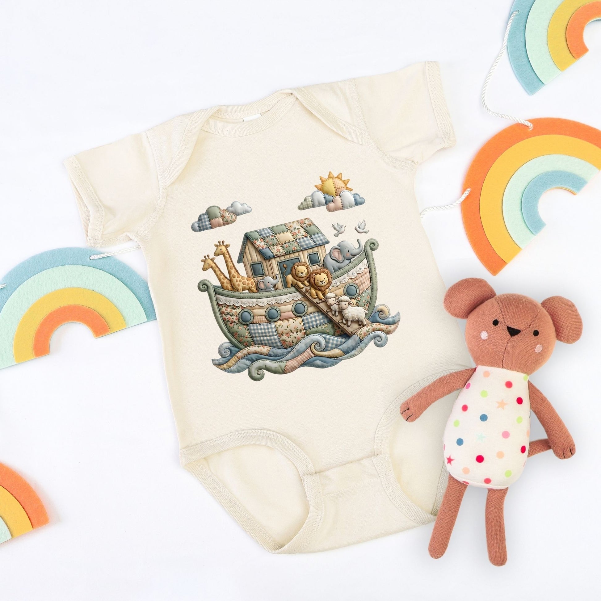 Set sail on style with this delightfully faux quilted Noah's Ark Shirt—a timeless design that floats across all ages!