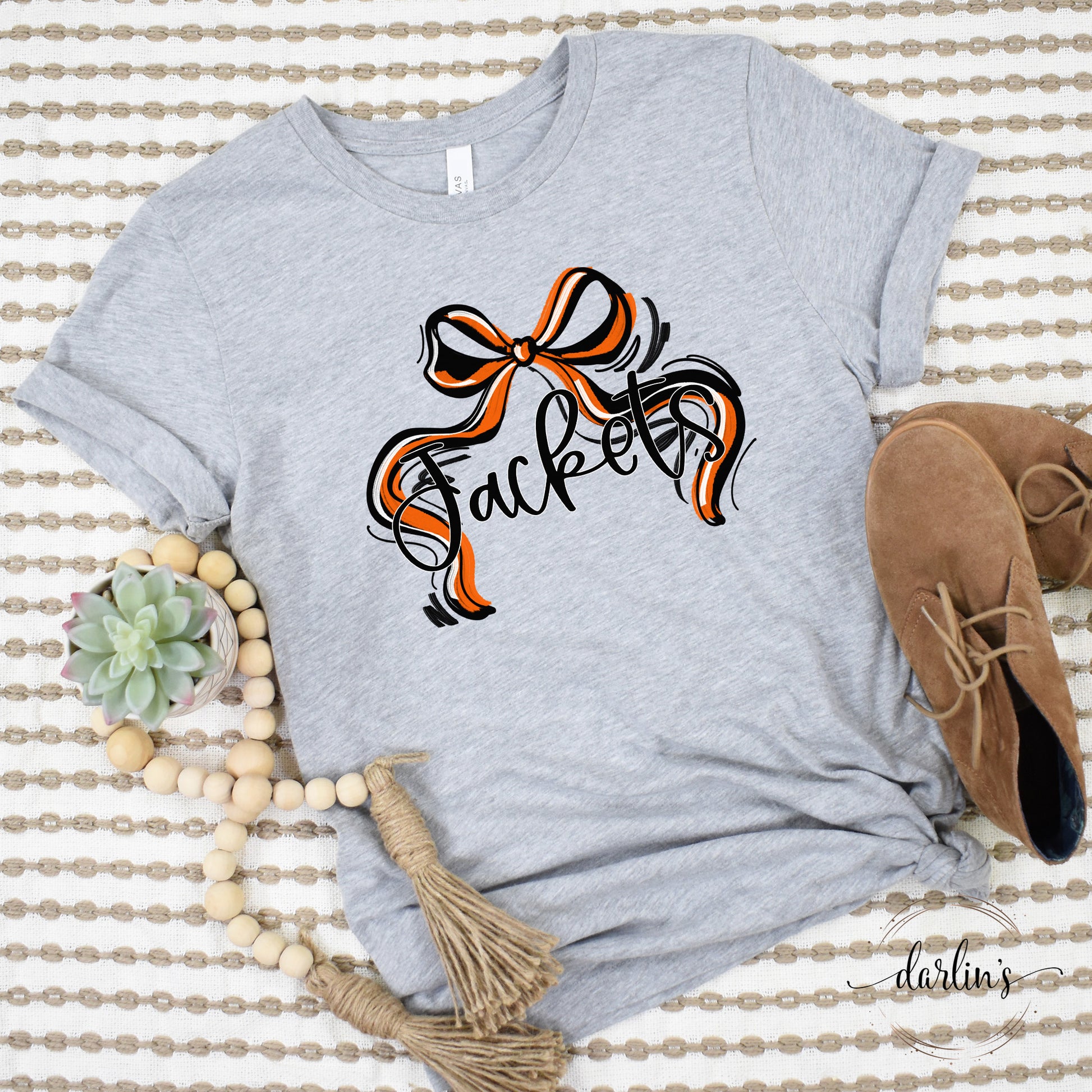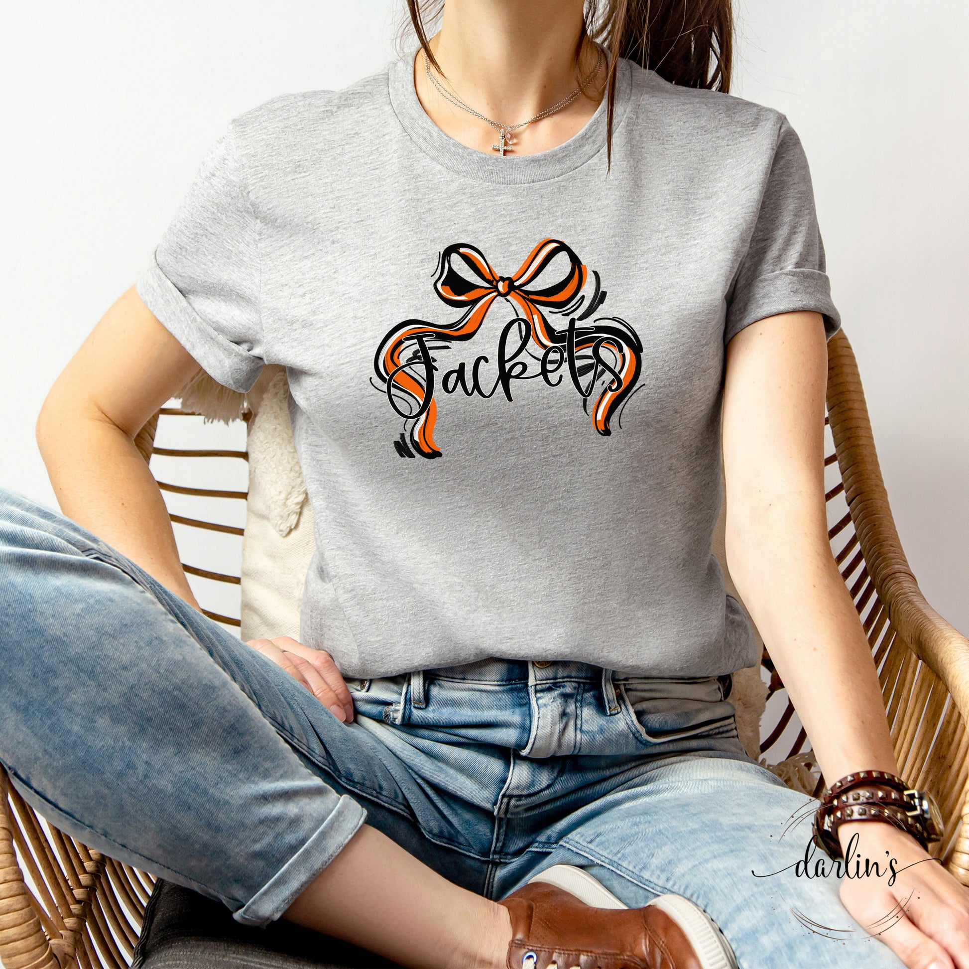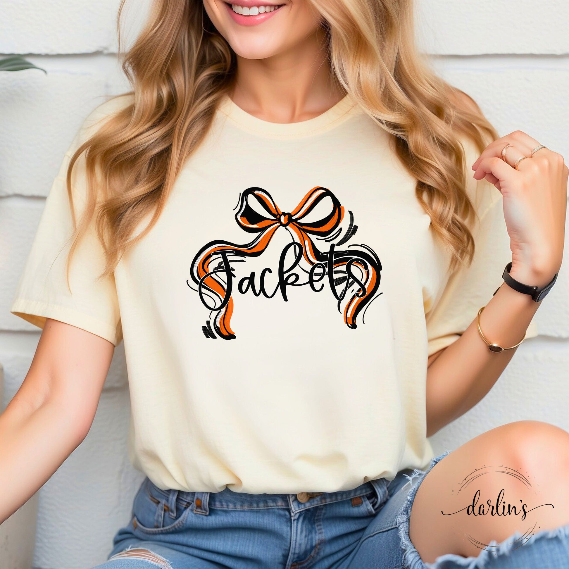 Celebrate your Jacket spirit with the Ribbon Sports Bow in vibrant Orange And Black. This playful accessory adds a splash of team pride to any outfit, making it perfect for game days, pep rallies, or just showing off your colors around town. Lightweight and easy to wear, it keeps your look fun and spirited while you cheer your team to victory.