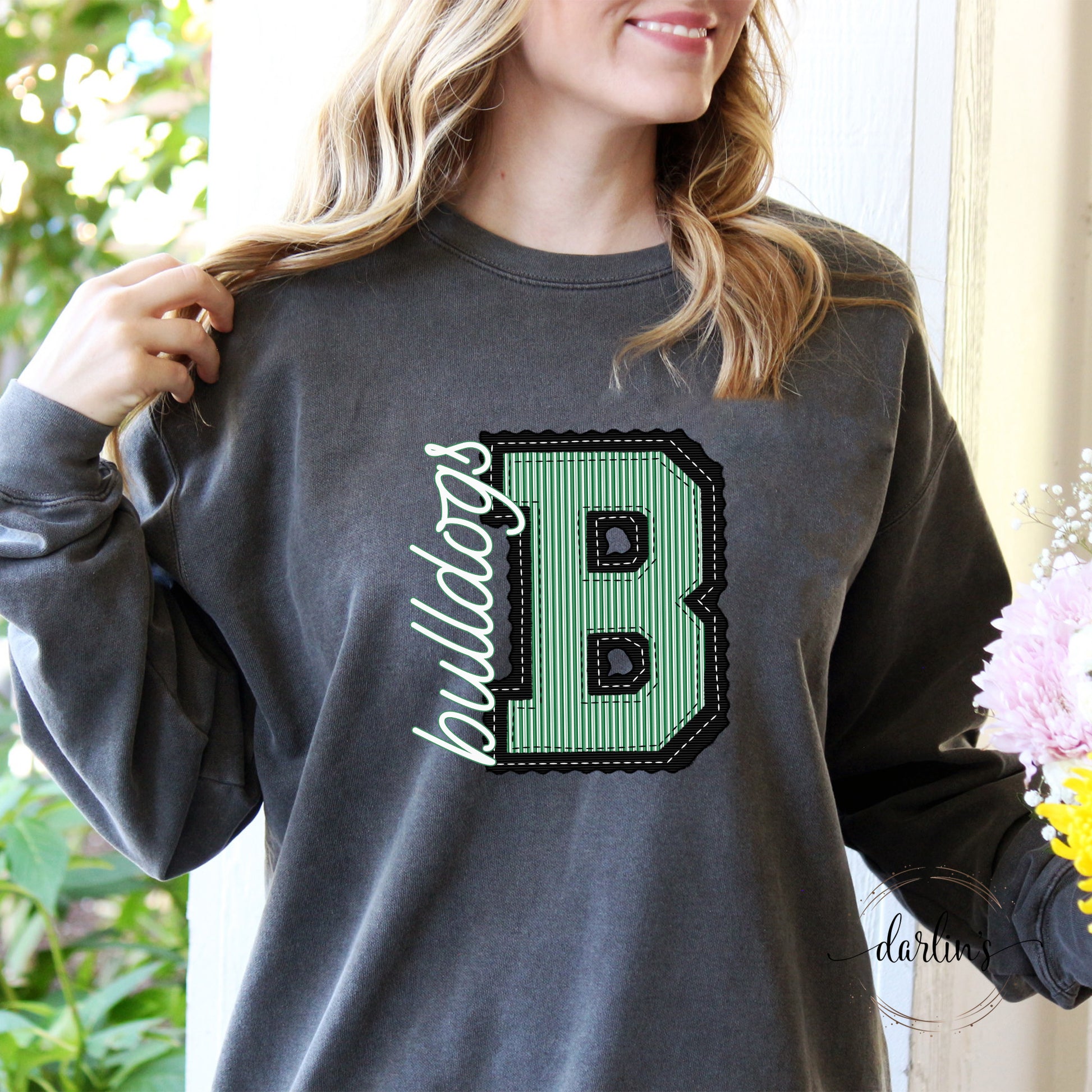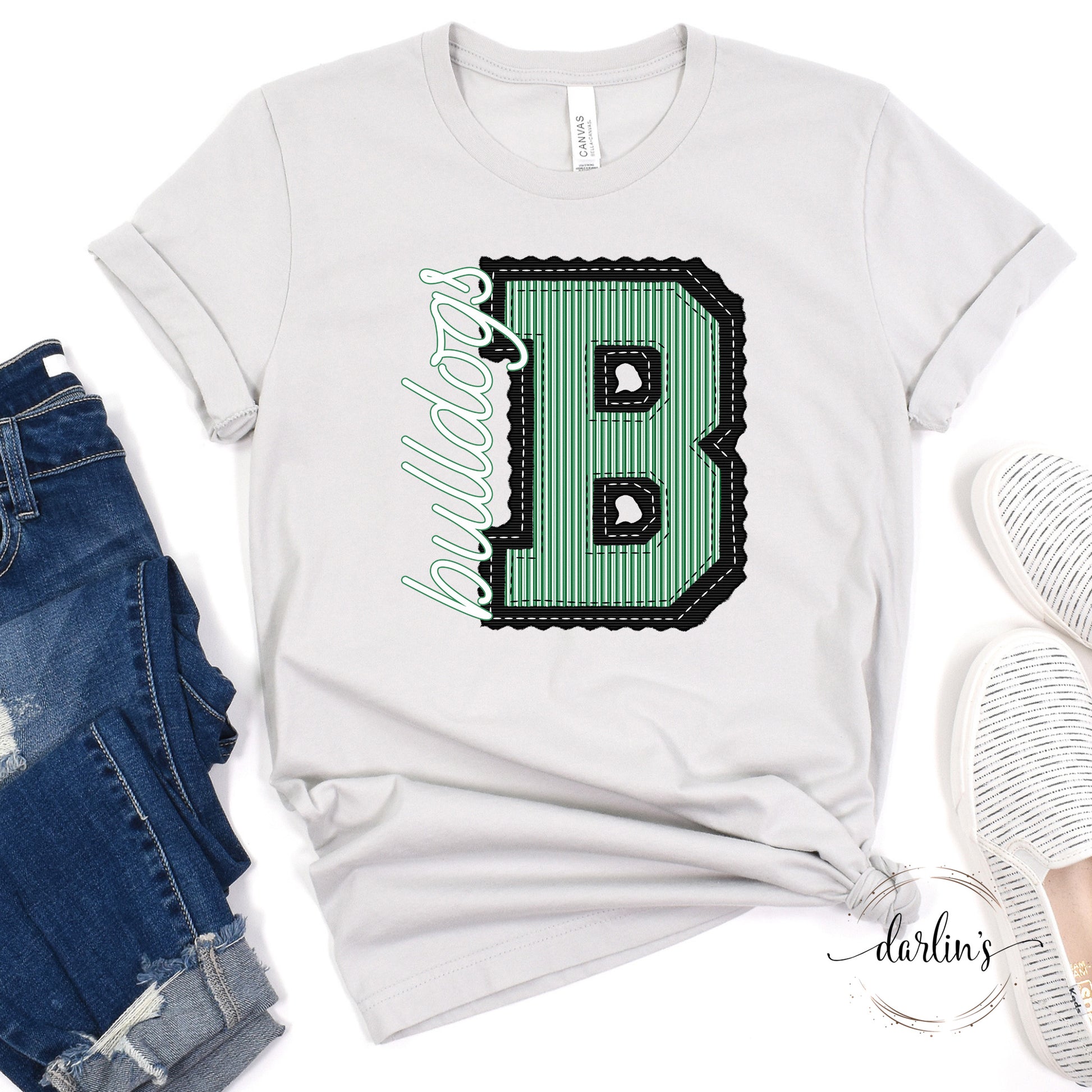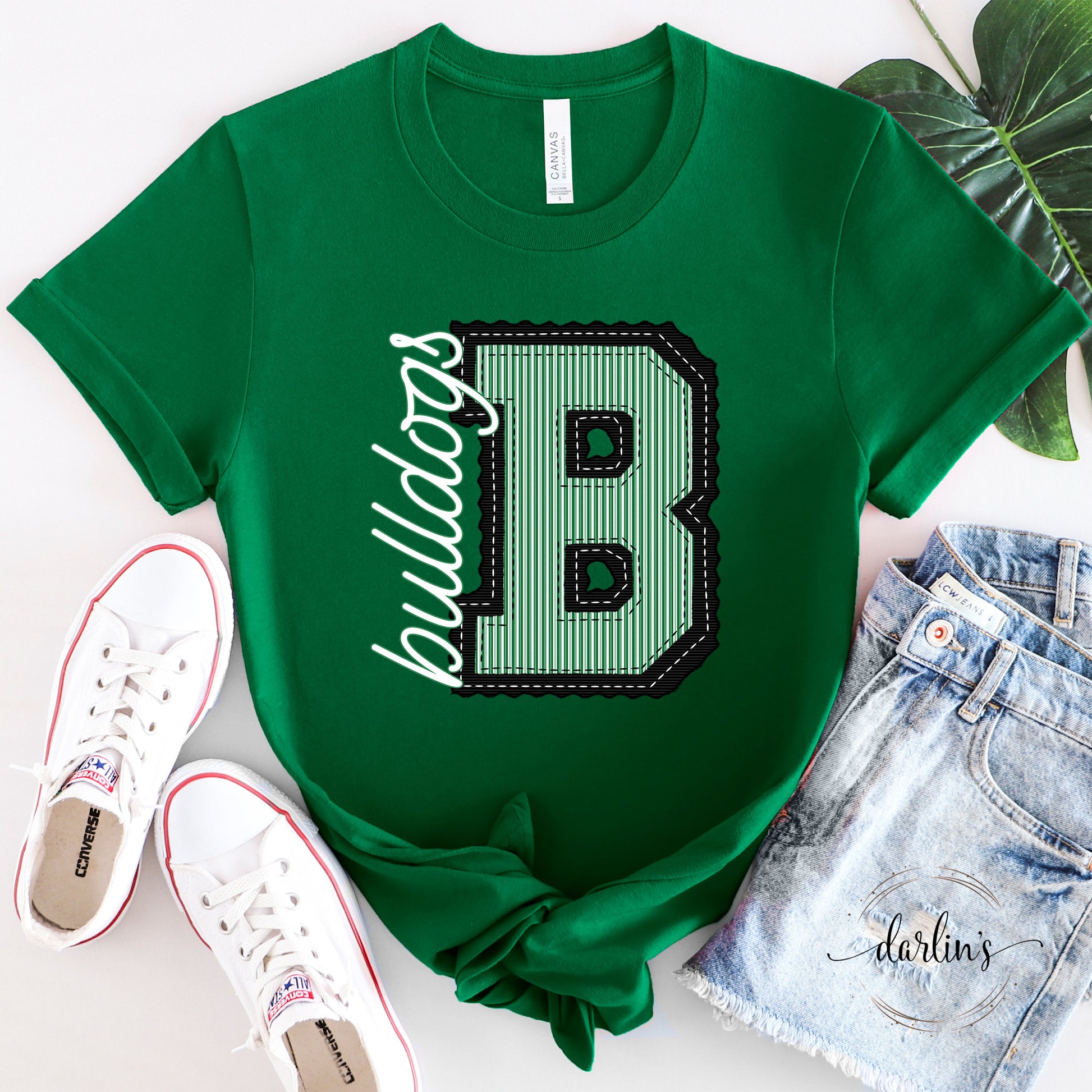 Celebrate game day in style with the Prepster - B Bulldogs Kelly Black graphic top! This playful and bold top combines classic black with vibrant Kelly green accents, making it perfect for showing off your Bulldogs pride. Comfortable and eye-catching, it’s ideal for cheering from the stands or hanging out with friends. Add a fun, spirited touch to your wardrobe with this must-have graphic tee.
