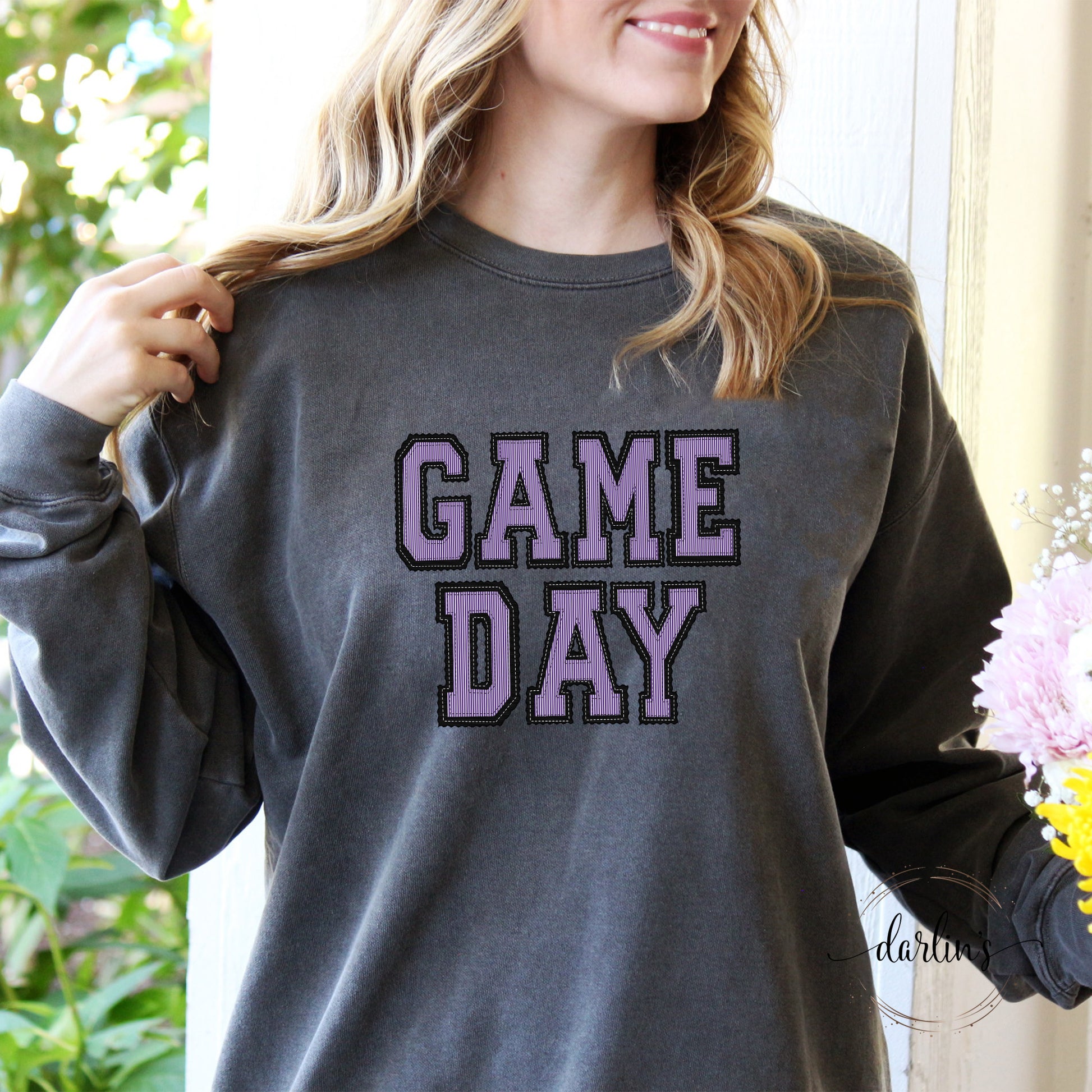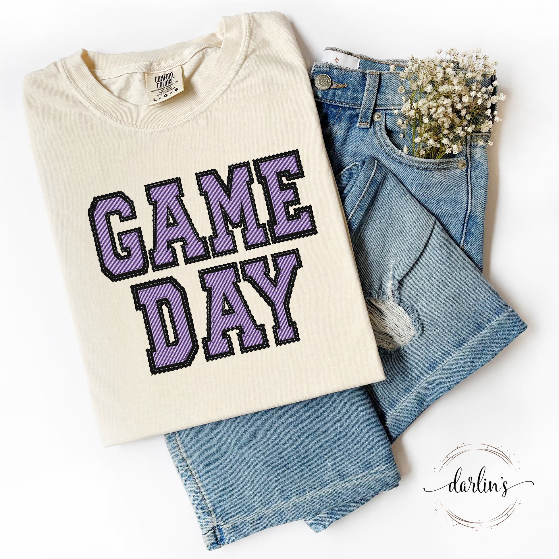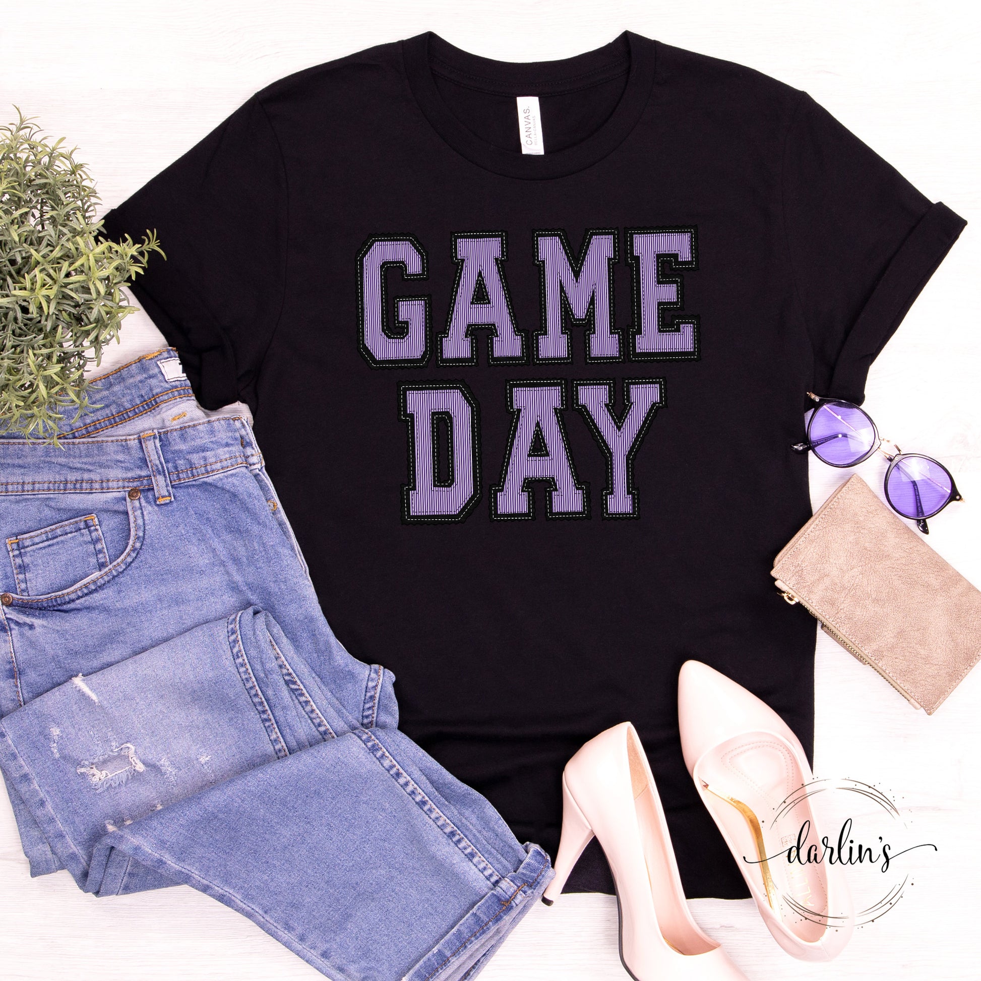 Get ready to show your team spirit with The Prepster Game Day Purple Black graphic top! This playful and vibrant shirt combines bold purple and black colors with a fun design that’s perfect for cheering on your favorite team. Whether you’re tailgating, watching the game at home, or out with friends, this top keeps your look fresh and spirited. Comfortable and eye-catching, it’s the ultimate choice for game day fun and casual style.